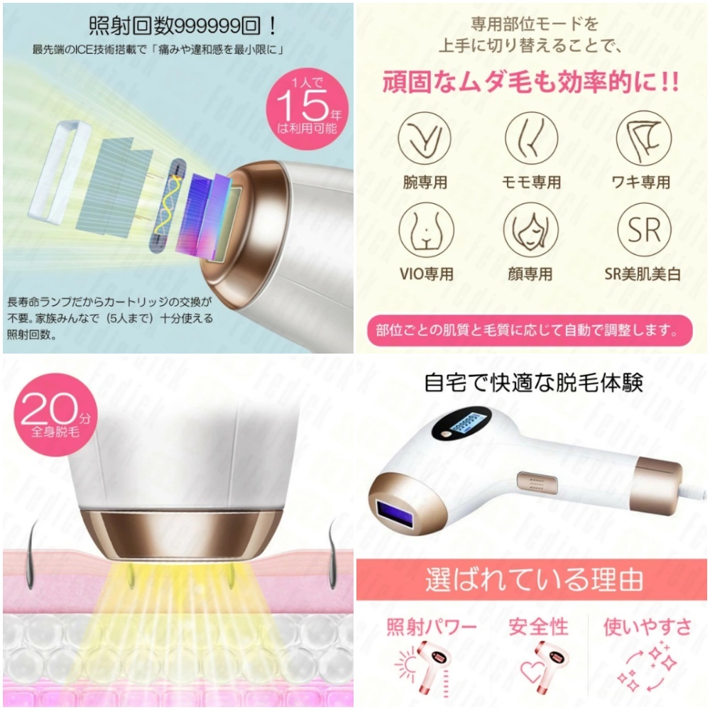 IPL光脱毛器美肌家庭用脱毛器冷感脱毛60万発照射全身用5段階レベルLCD液晶スクリーン自宅レディースユニセックスセルフケアus-10153