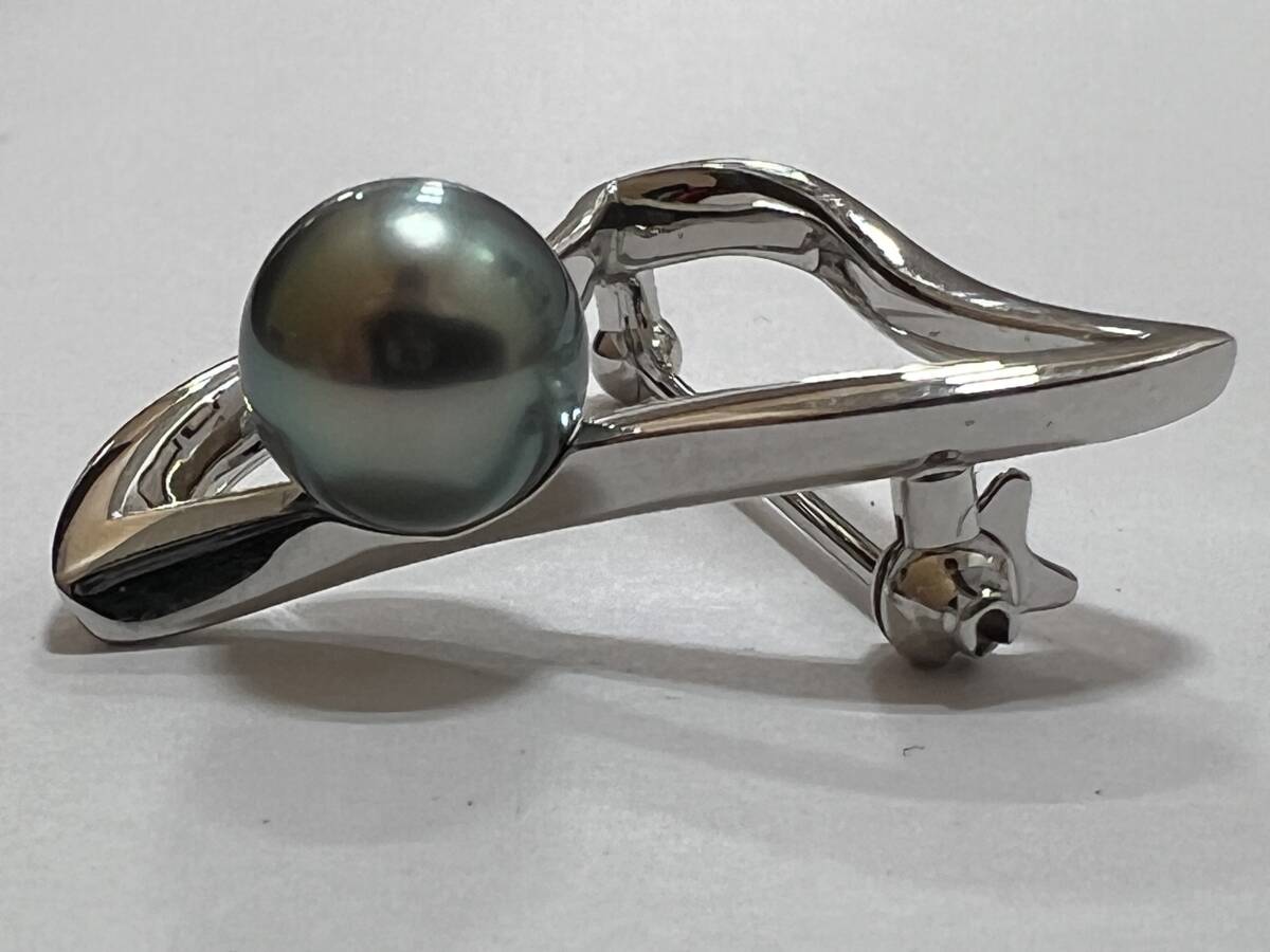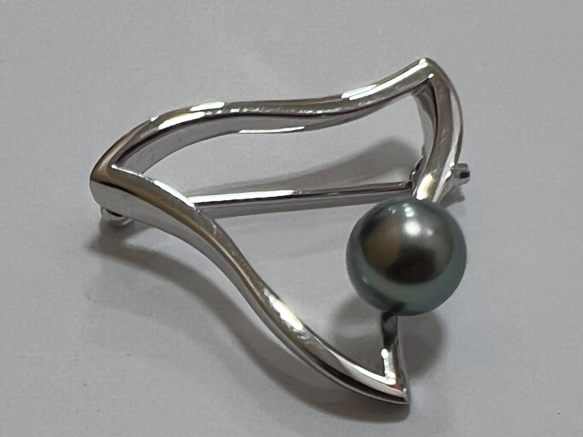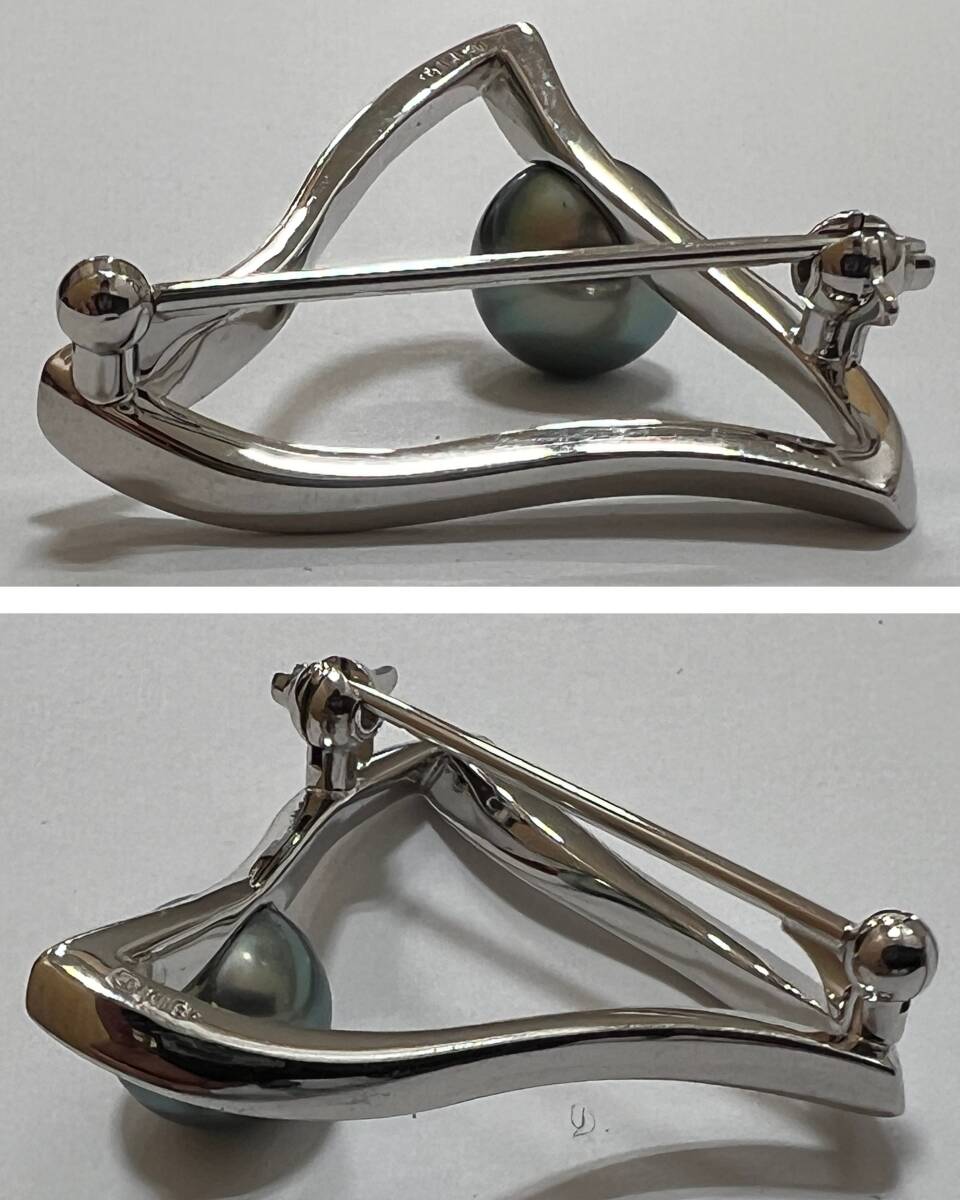 ☆ MIKIMOTO ミキモト 黒蝶真珠 ピンブローチ K18刻印 幅約29mm 縦約28mm 重量約7.5g パールサイズ約8.5mm 管ARRR