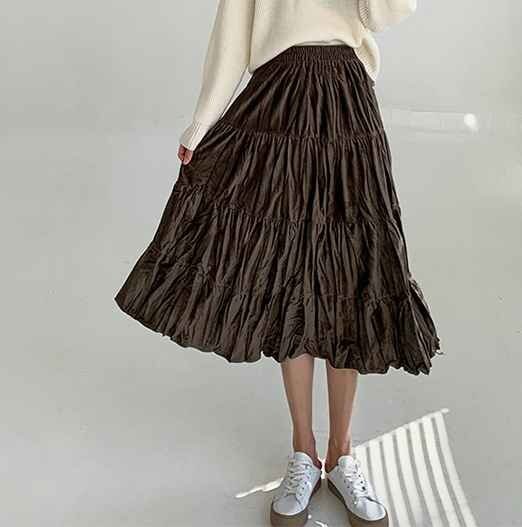 立体的なシルエットがきれいで、色とデザインのバランスが高見えのスカート。