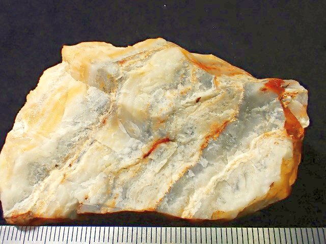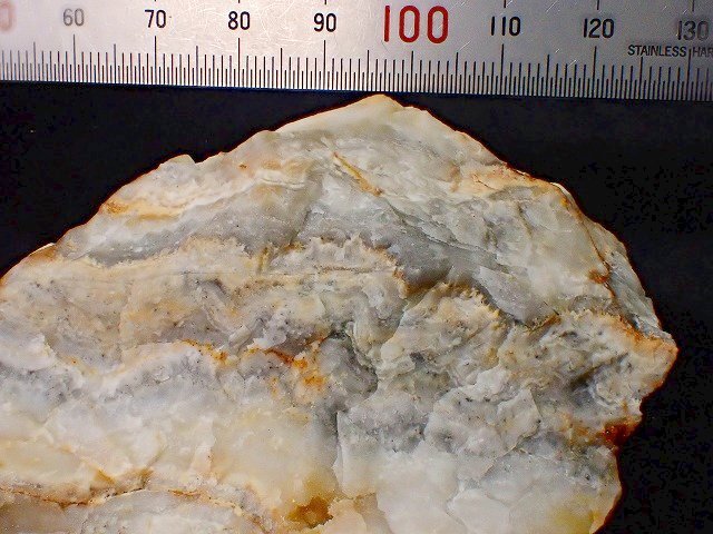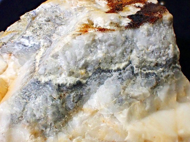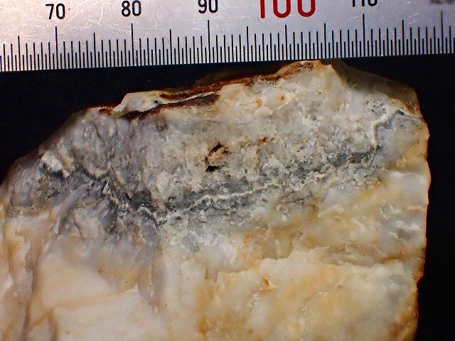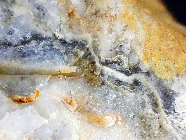 御覧頂き有難うございます。今回出品する商品は、縞状銀黒鉱(ポリバス鉱、銀四面銅鉱)です。産地は群馬県利根郡片品村戸倉大薙沢根羽沢鉱山本です。微粒のポリバス鉱、銀四面銅鉱が鉱染した縞状銀黒に波打って発達している。