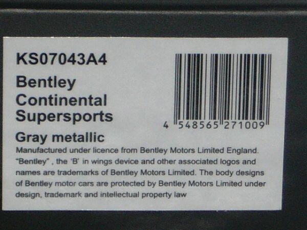 1/64程度 京商 Bentley Continental Supersports グレーメタリック