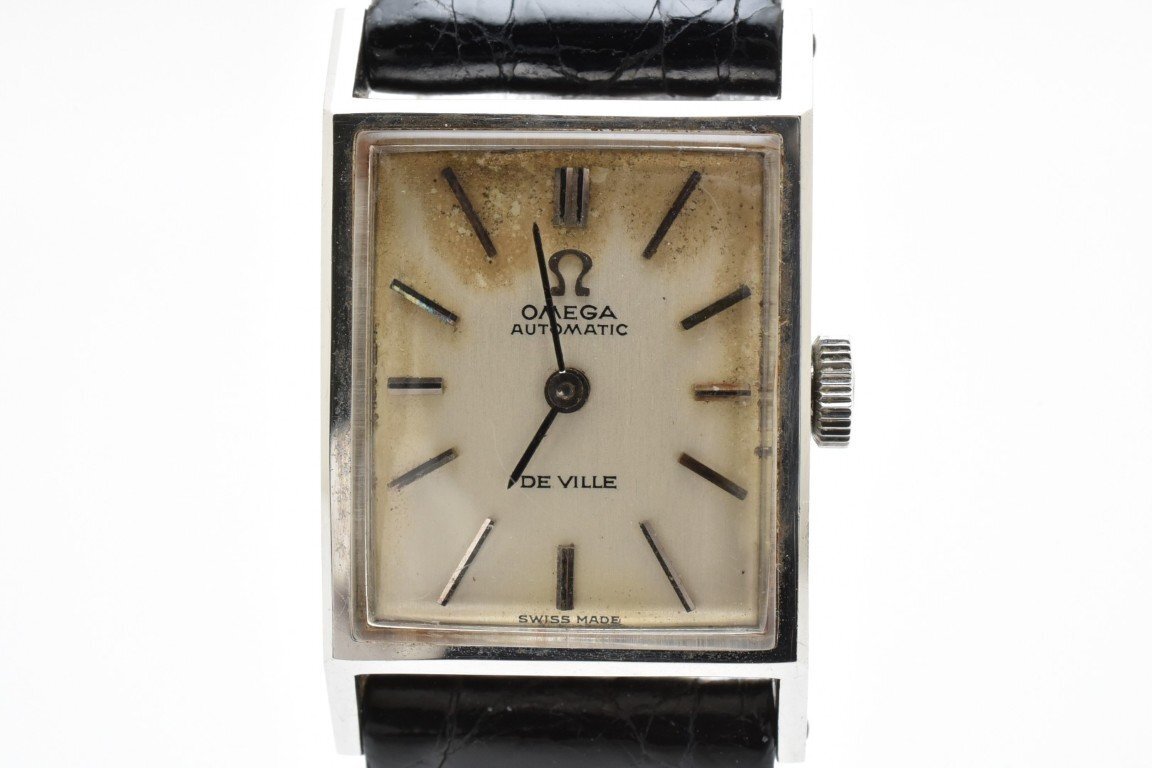 稼働品 OMEGA AUTOMATIC DE VILLE オメガ 自動巻き デビル スクエア レクタングル 腕時計 レディース 2針 ホワイト シルバー