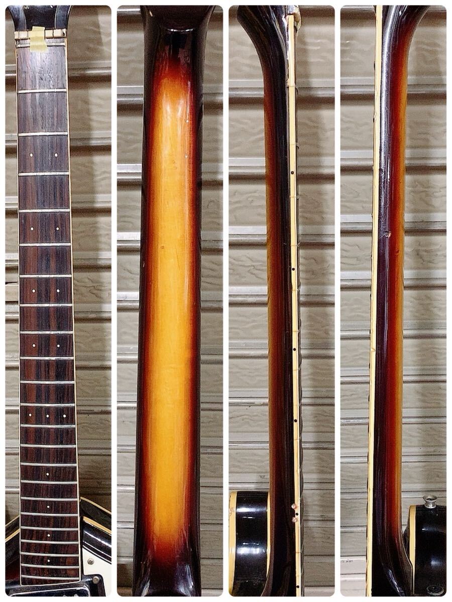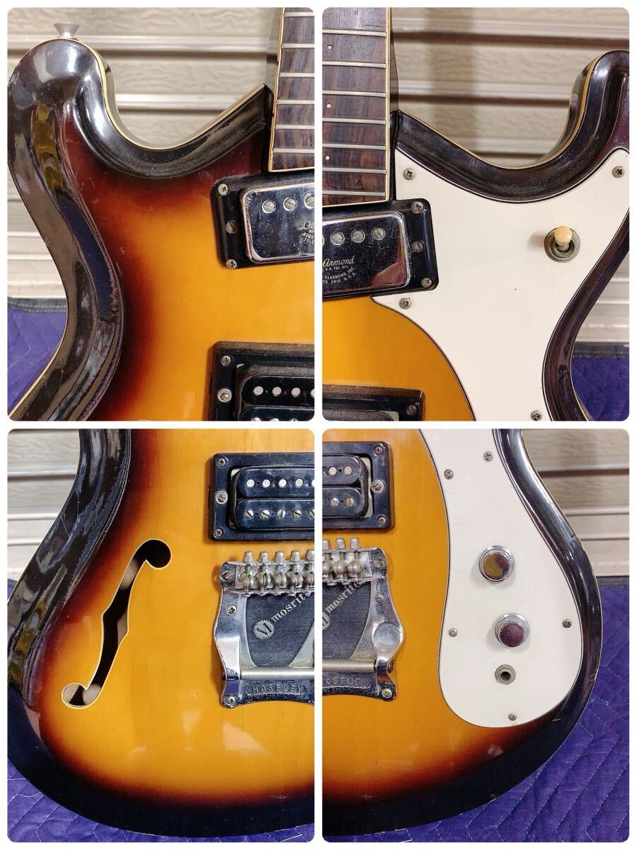 ヘッドにモズライトのロゴシールを貼ったのか、ディアルモンドのブリッジを移植したのか、ボディがモズライトなのかモズライト風なのかいまいち判断ができないものになります。