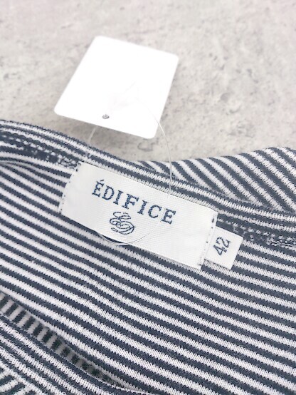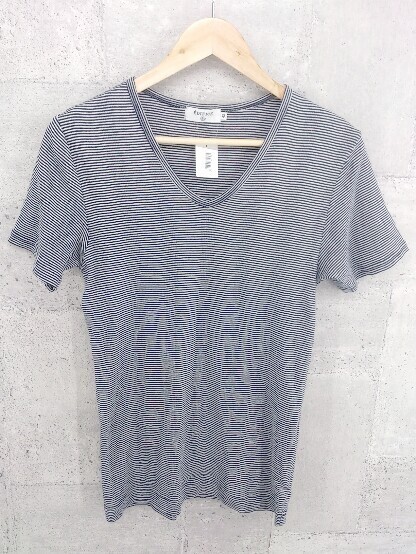 ◇ EDIFICE エディフィス ボーダー 半袖 Vネック Tシャツ カットソー 42 ブラック ホワイト レディース