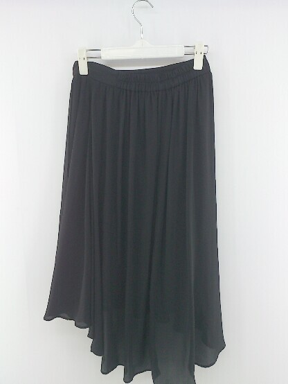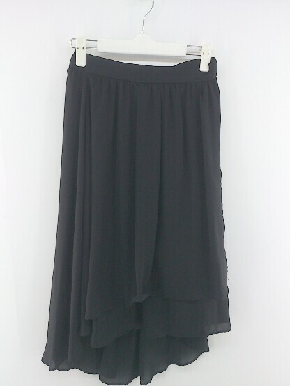 ◇ ing イング ウエストゴム シアー ヘムライン 膝下丈 フレア スカート サイズM ブラック レディース P