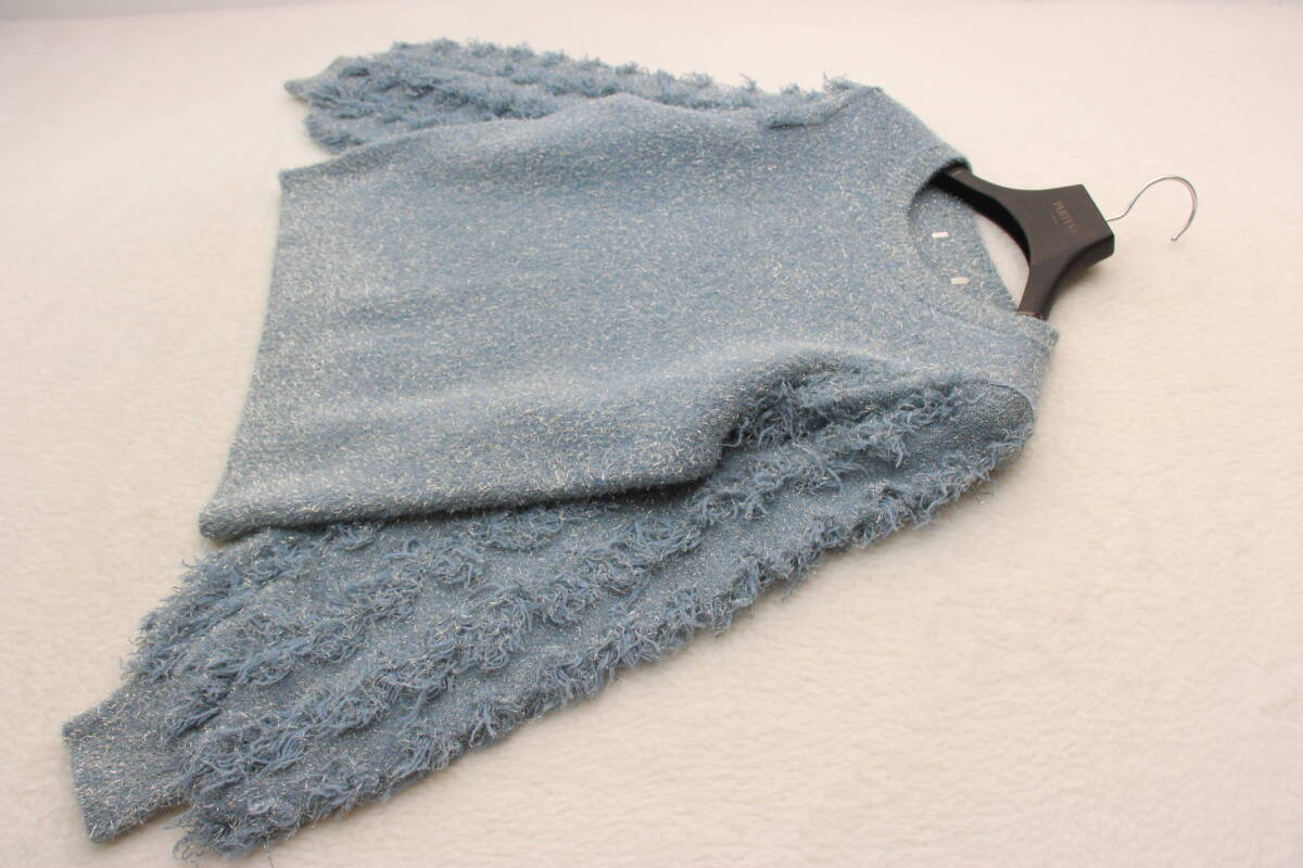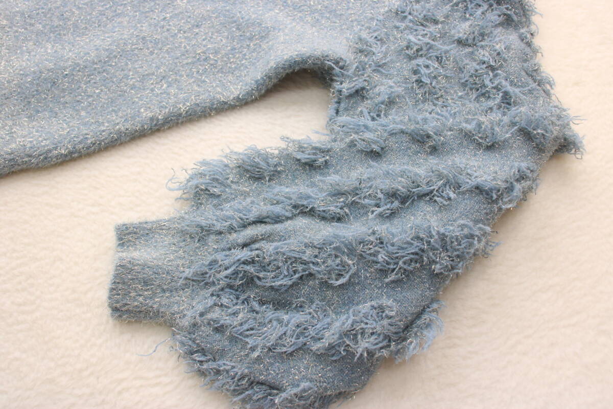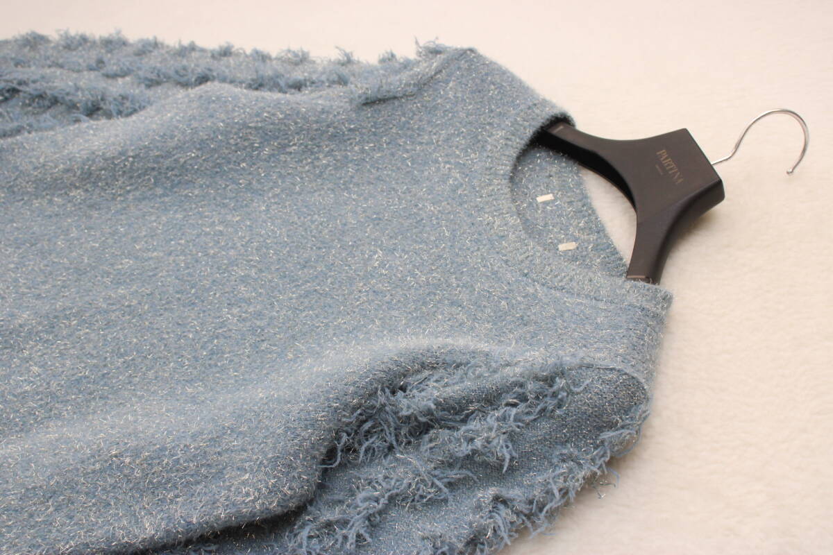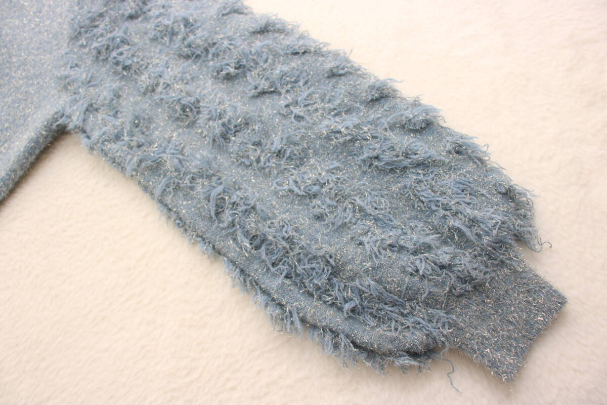 7480 新品 ラメフェザー袖フリンジニットプルオーバー