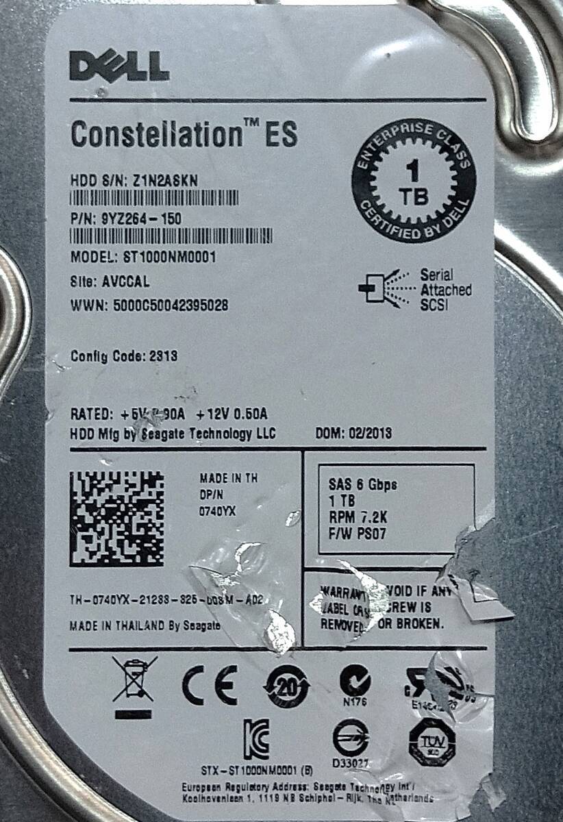 【中古パーツ】 3.5インチ DELL ST1000NM0001 7..2K SAS 1000GB HDD 正常品 1台■SAS 2001