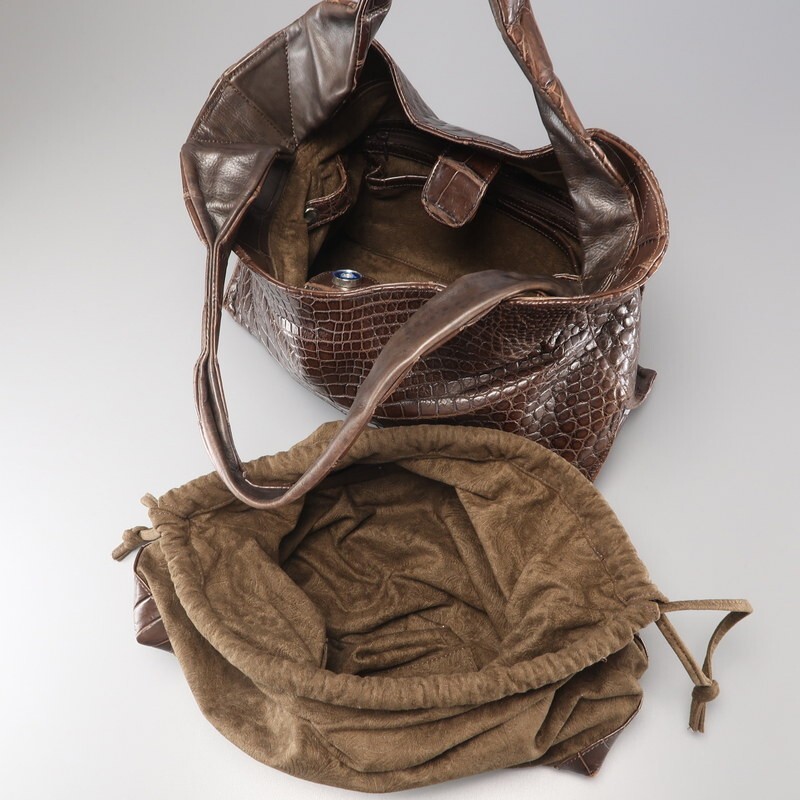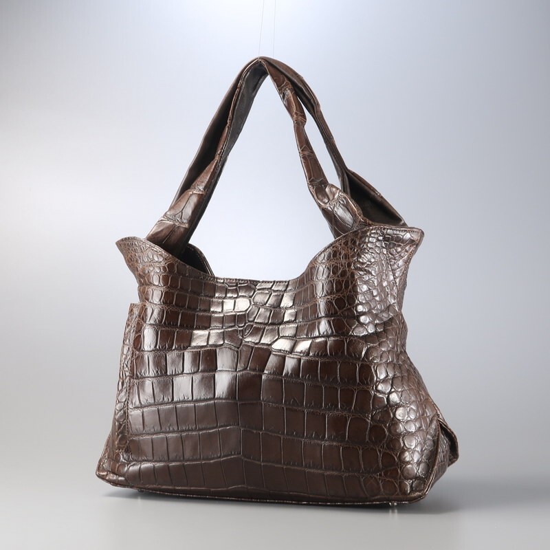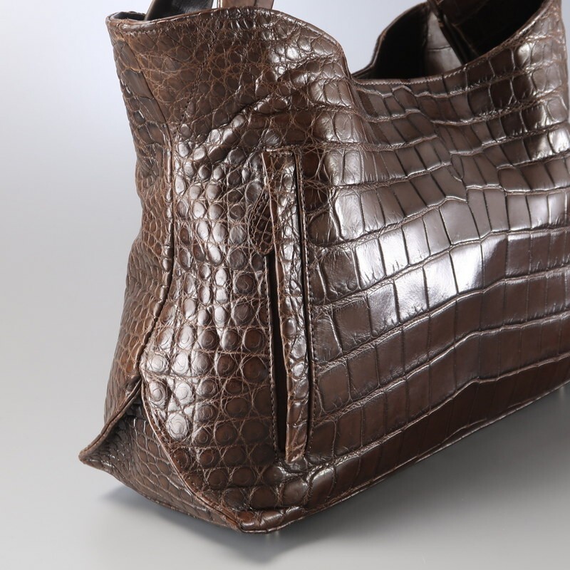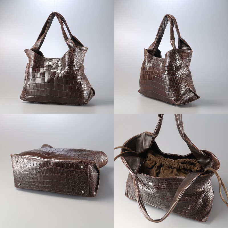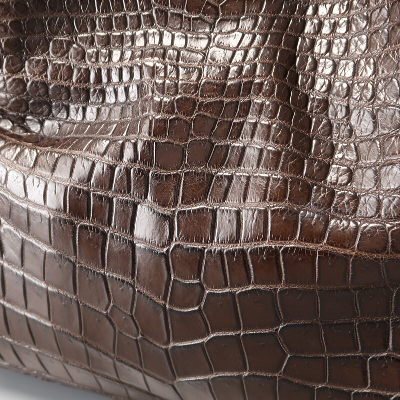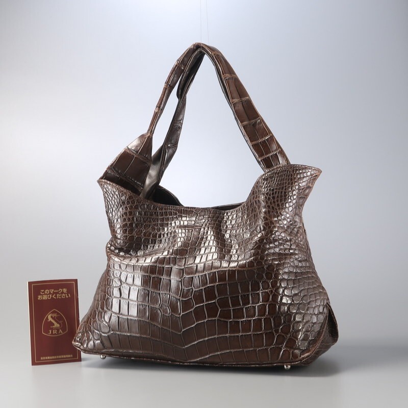 | MI2845■JRA認定 センター取り マットクロコ 本ワニ革 クロコダイルレザー ハンドバッグ トートバッグ 手提げ 鞄 ダークブラウン系 | |||