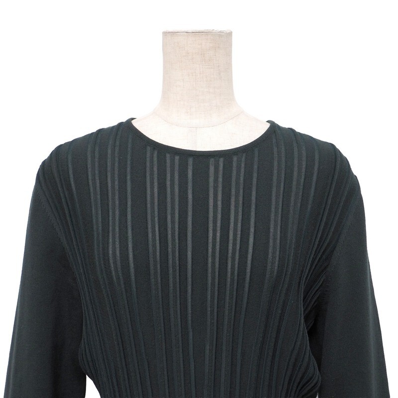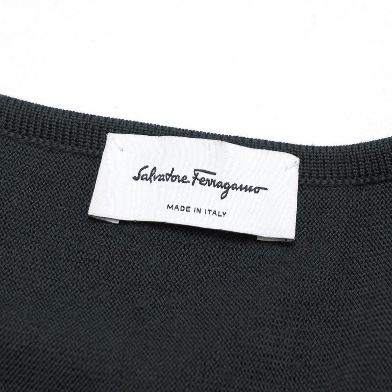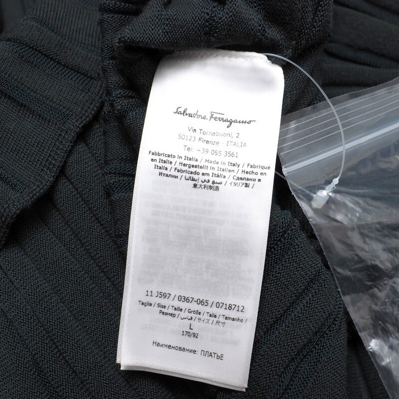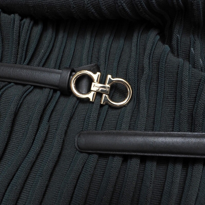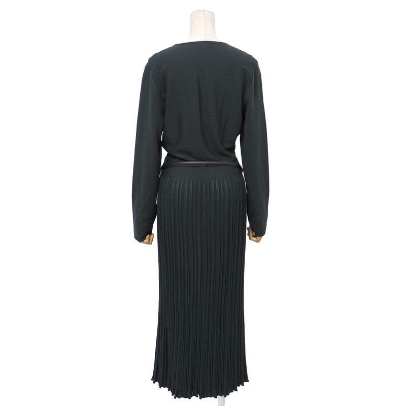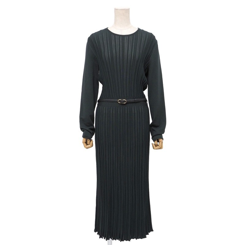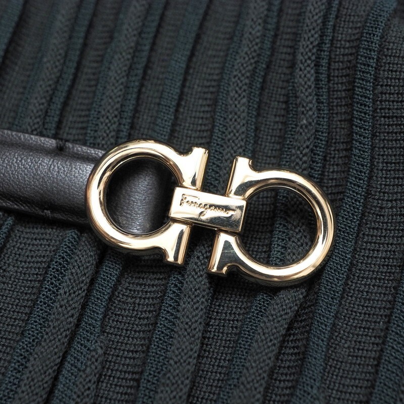 | MI4013★イタリア製 サルヴァトーレフェラガモ ウール ガンチーニベルト ニットワンピース グリーングレー系 L プリーツ ロング丈 | |||