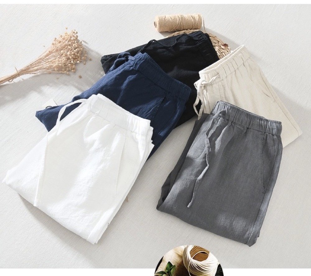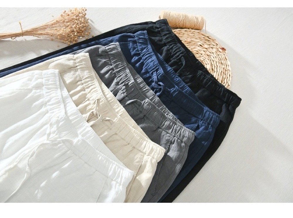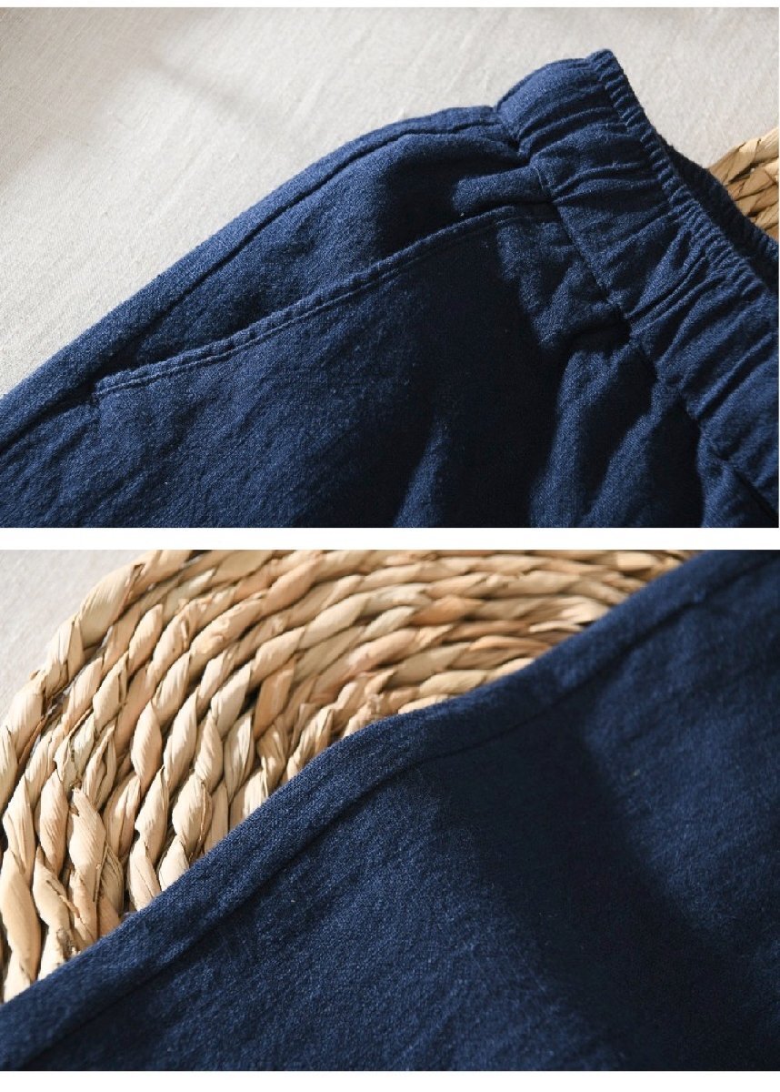 メンズ麻綿ズボン リネンパンツ ワイド 無地 涼しい イージーパンツ チノパン ジョガーパンツ カジュアル ボトムス 9分丈 ネイビー L