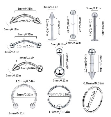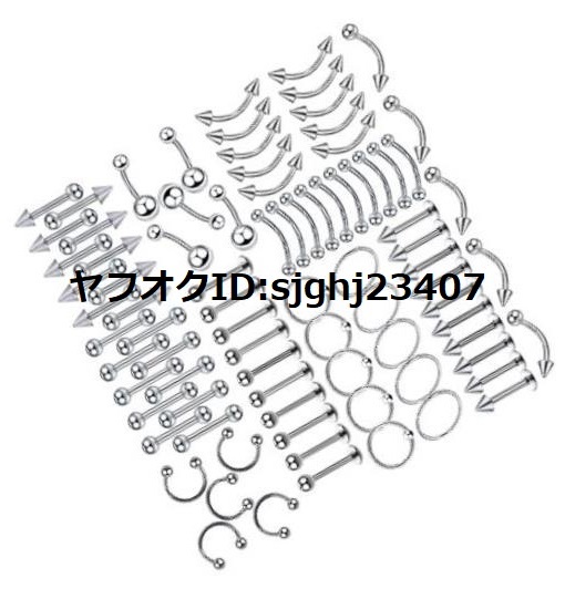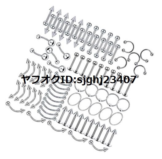 Ⅱ□ボディピアス大量85個セット シルバー ステンレス 14G 16G サーキュラー バーベル スタッド ストレート リング 新品 耳 口 鼻 へそ