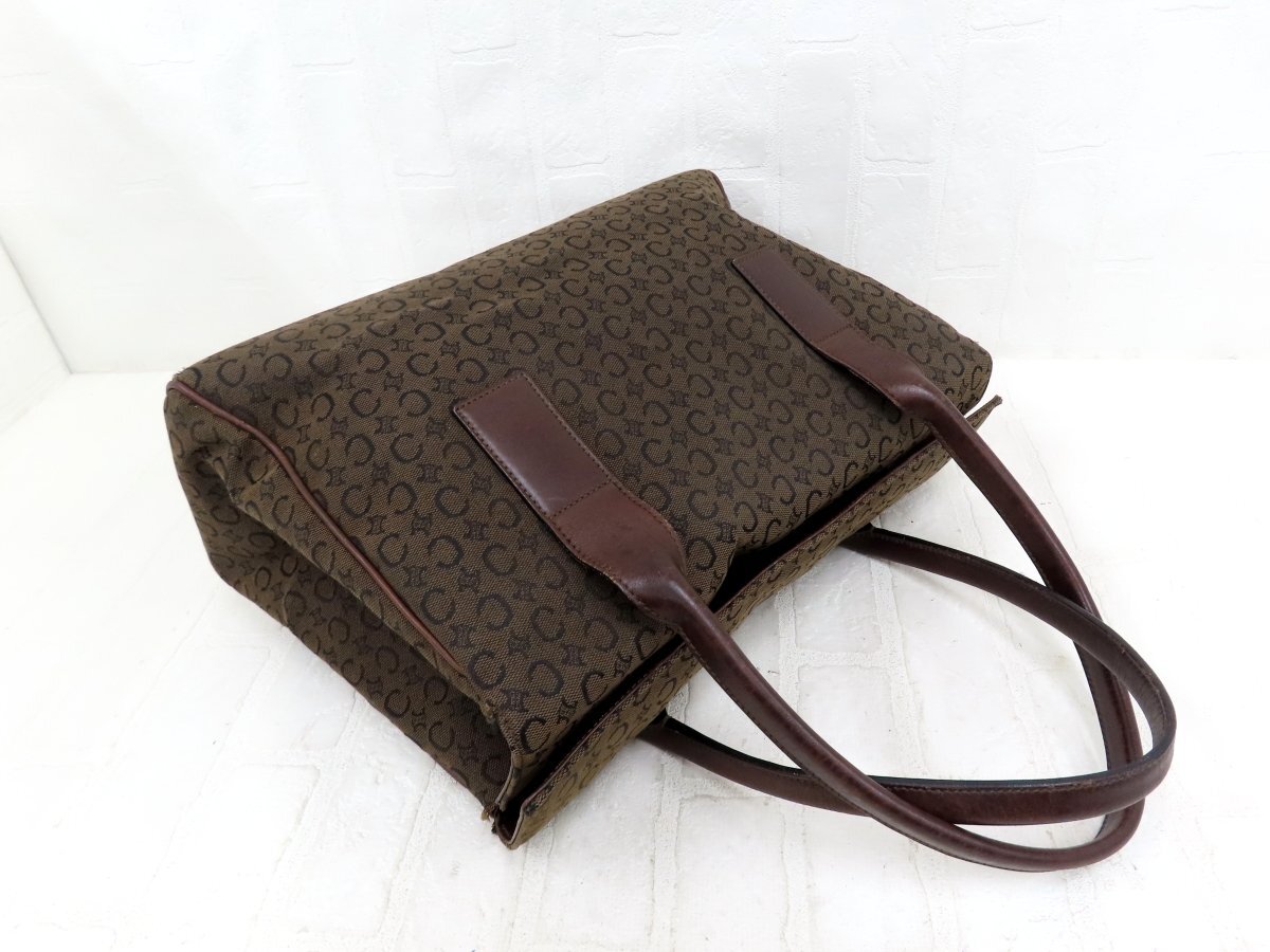 ◆美品◆CELINE セリーヌ◆Cマカダム◆キャンバス カーフ レザー 本革◆ハンド バッグ◆ブラウン ゴールド金具◆イタリア製◆A14537