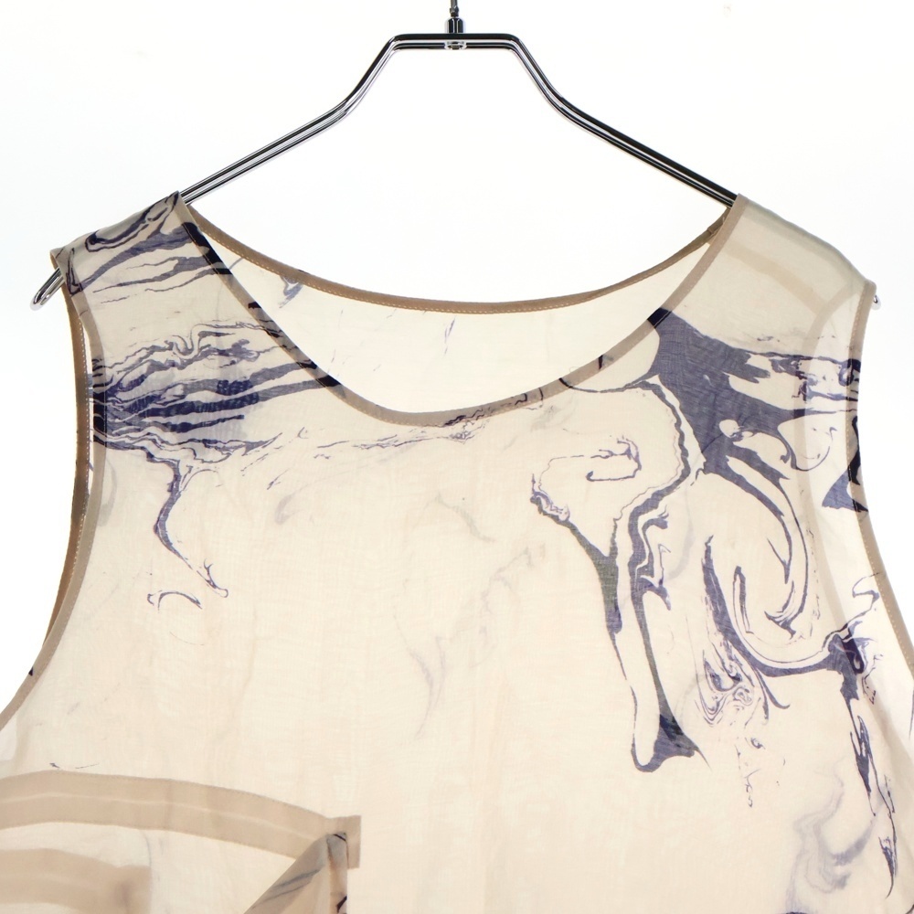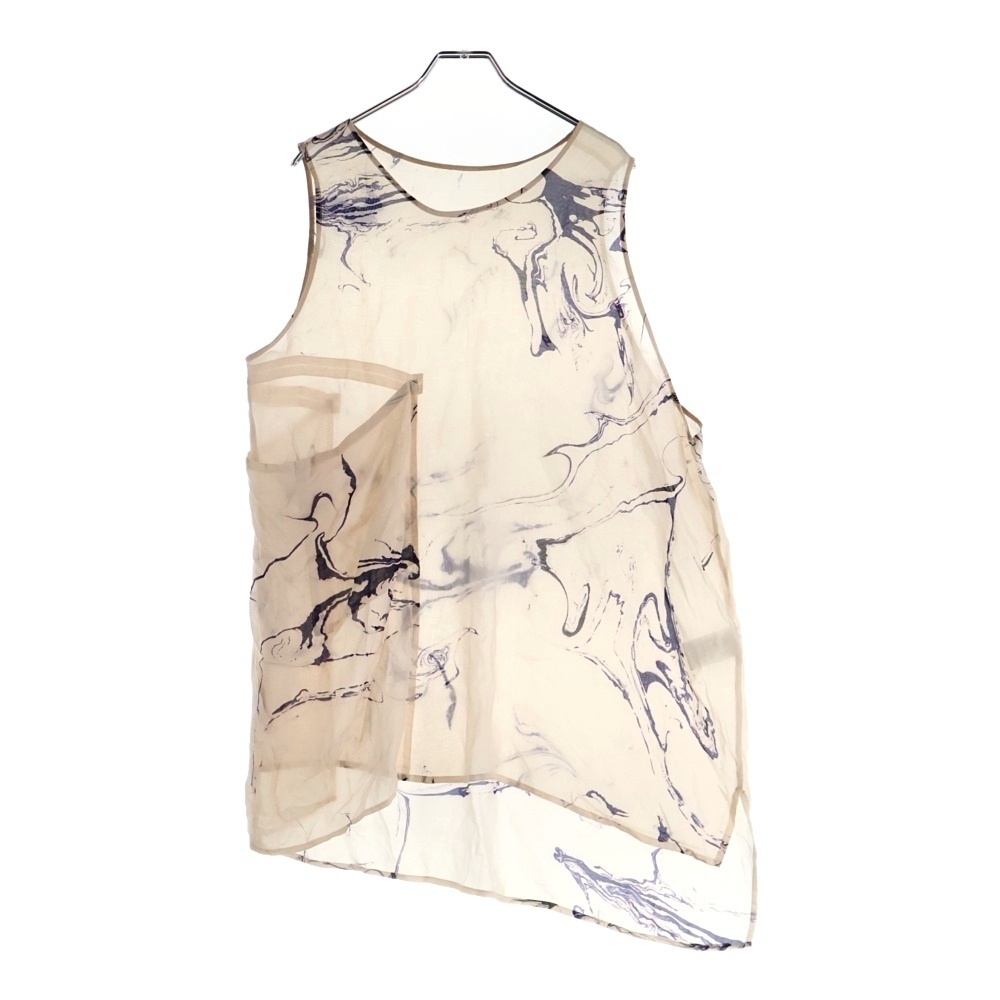 Y's ワイズ マーブル総柄 ノースリーブロングカットソー トップス レディース アイボリー YN-B09-212