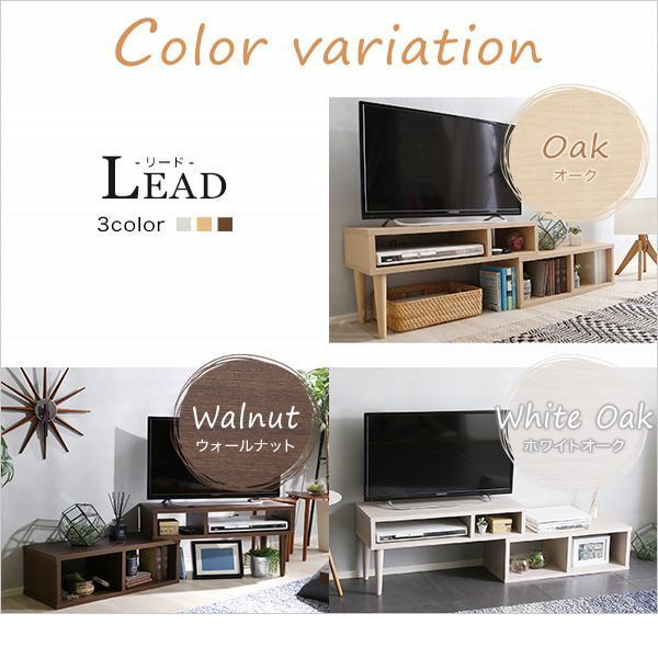 | 【ポイント】 ①薄型テレビに特化したスリム設計の伸縮式テレビ台です。 ②本体幅を調節できるから、設置スタイルは思いのままです。 ③魅せるオープン収納で自分だけの空間を演出します。 ④美しい木目調の3カラー展開です。 |