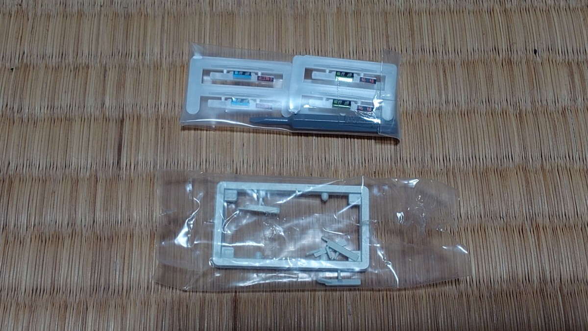 付属品(行先表示パーツ、ドライバー、連結時用転落防止幌パーツ)付いています。