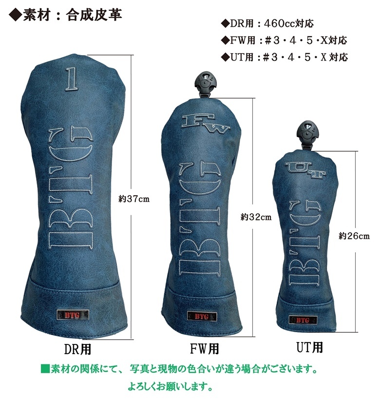 ●4オークション♪【DR-NA】ブルーティーゴルフ【BIG BTG - Classic:ネイビー】ドライバー用ヘッドカバーBLUE TEE GOLF 送料無料