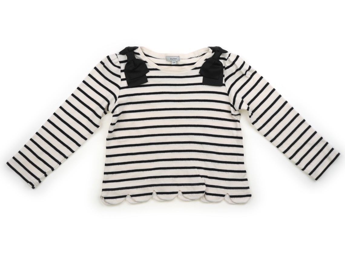 厚手カットソー生地。全体に毛羽立ちがあります。胸に緑、腹部に黄色、袖に茶色のインク汚れがあります。外遊び用としていかがでしょうか?
