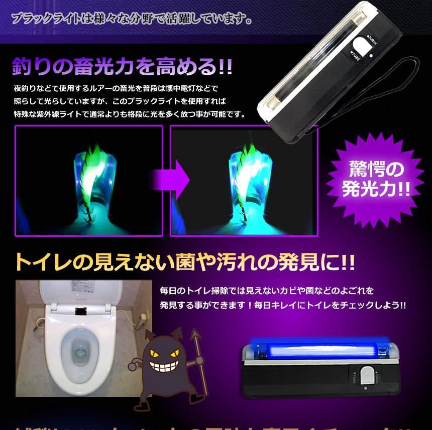 | LEDブラックライトは様々な分野で活躍しています。 |