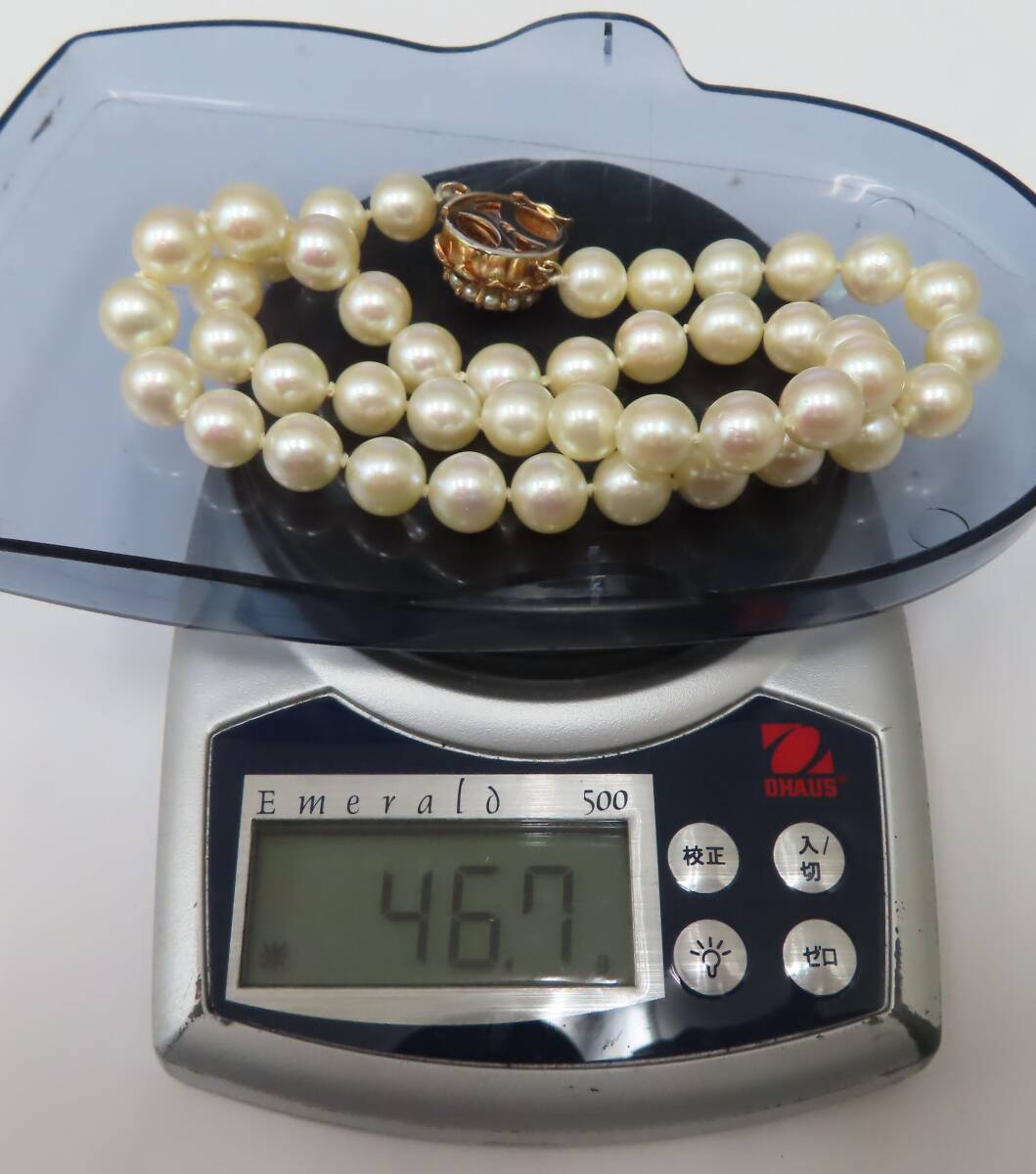 | #92205 本真珠 ネックレス 留め具 K14 (留め具約5g) パール総重量約46.7g | ||