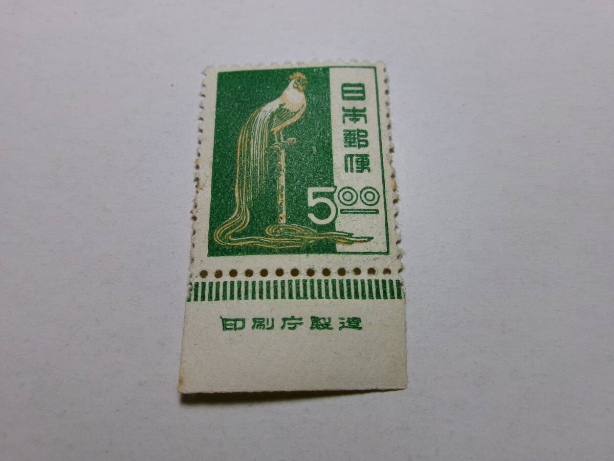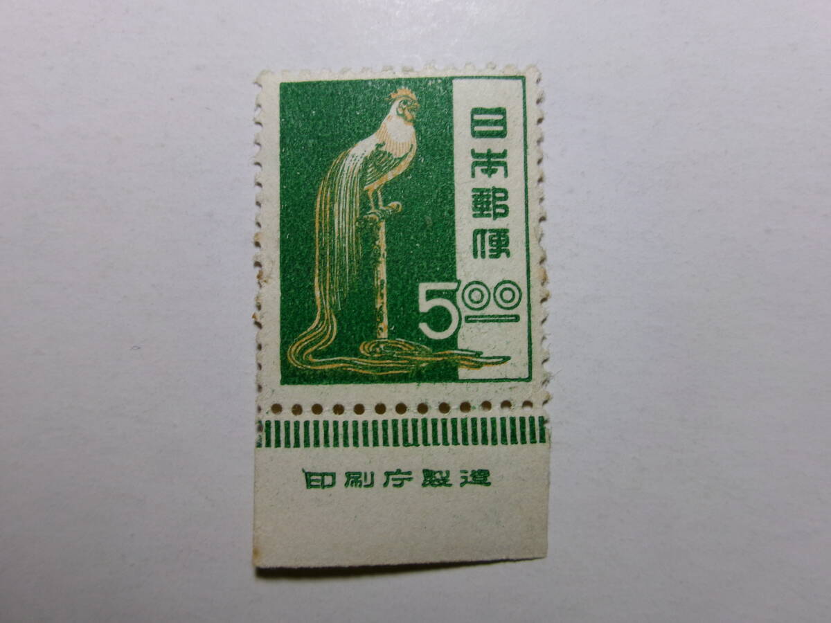動植物国宝図案切手 すかしなし 尾長鳥 印刷庁銘版 未使用 黒-K