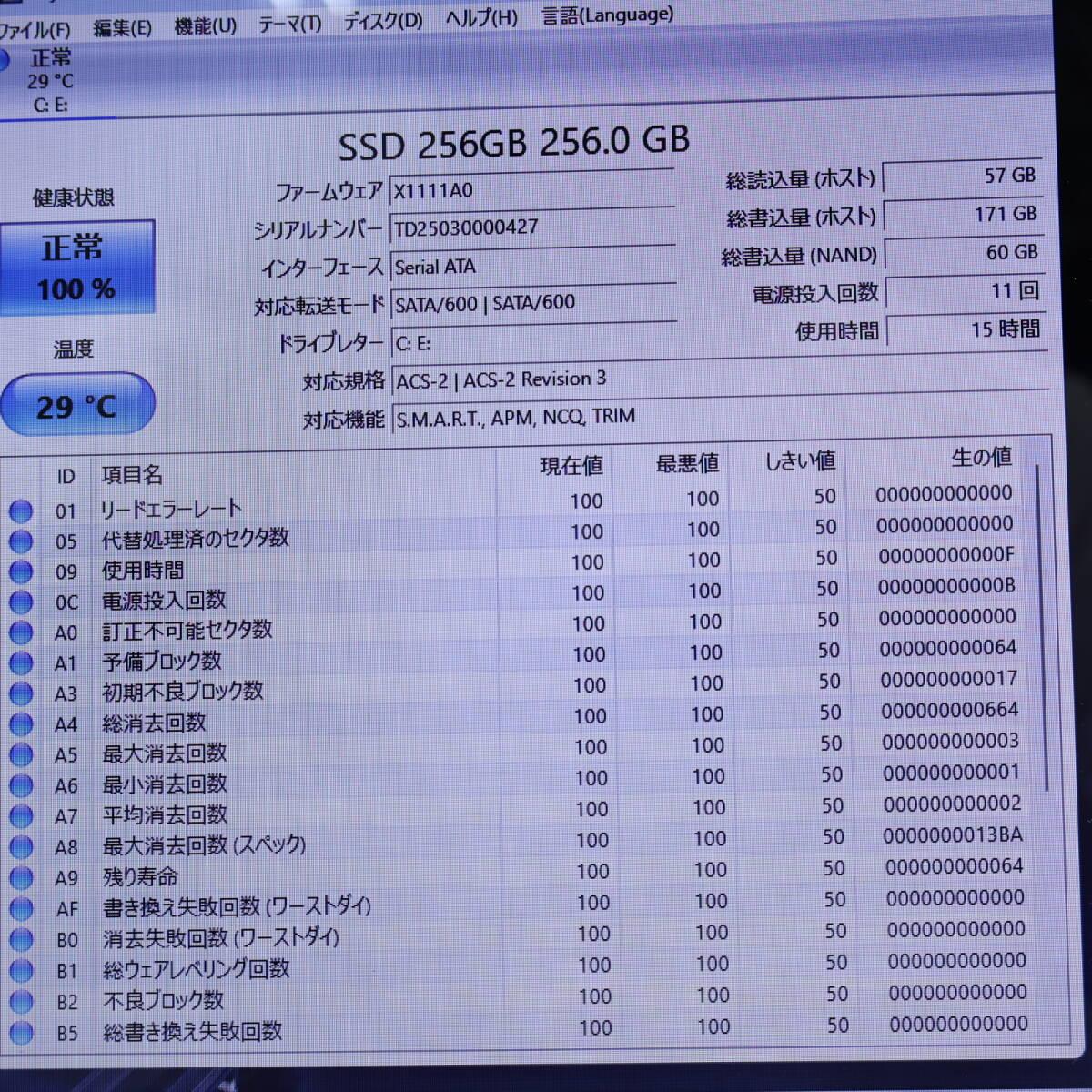 ◎ストレージにはHDDよりも速度が早く快適にPCを使用できる SSD を使用しています