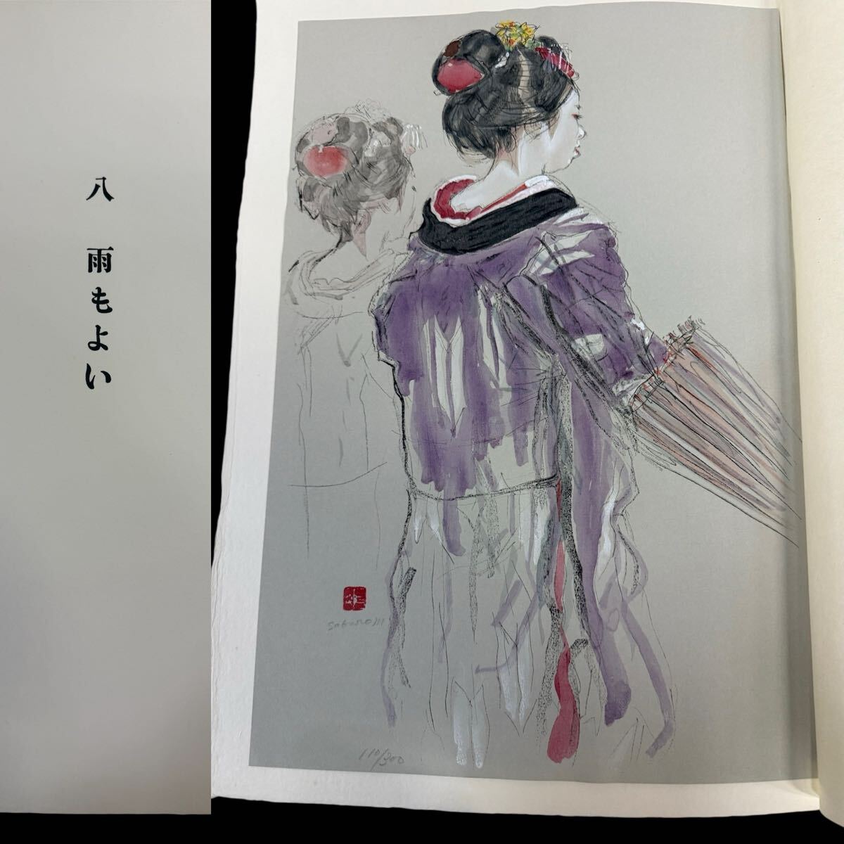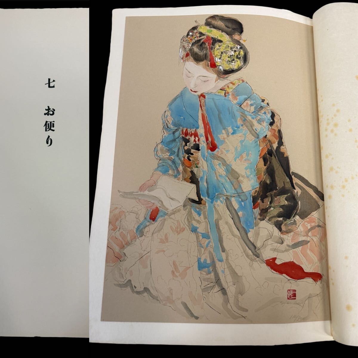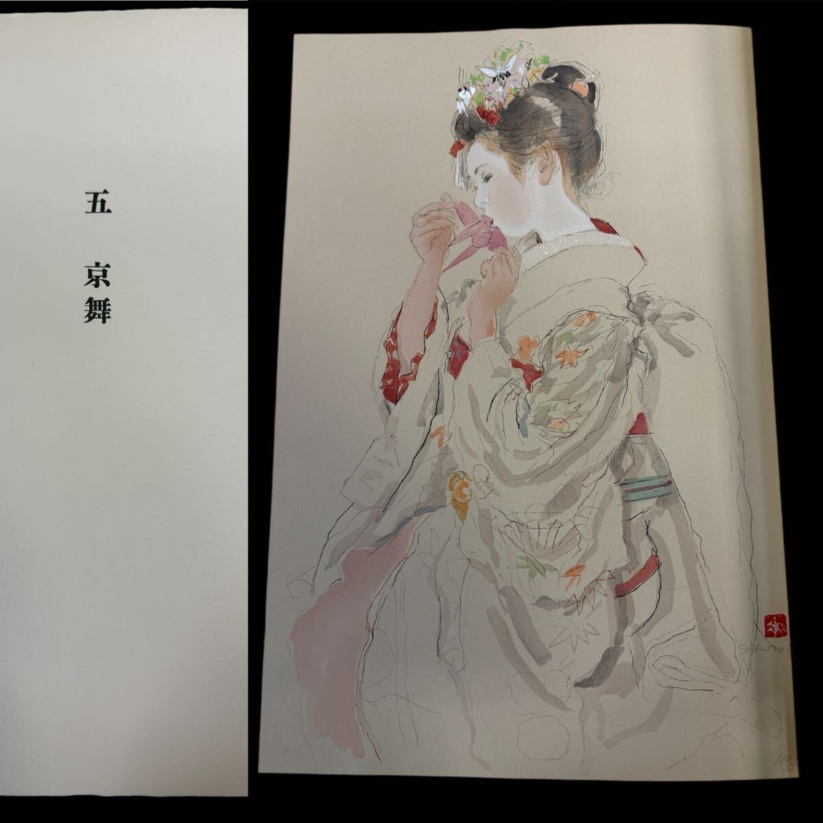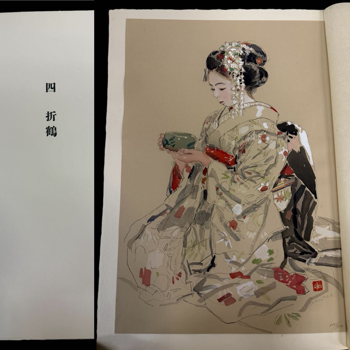 宮本三郎『舞妓十二題集』全12葉 手摺木版画 限定110/300 直筆サイン 装幀布:龍村織物 タトウ秩入 昭和47年発行 額付き 外箱付