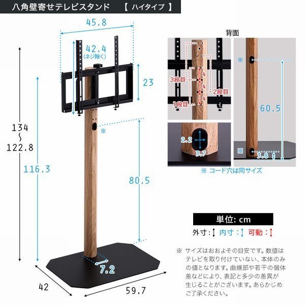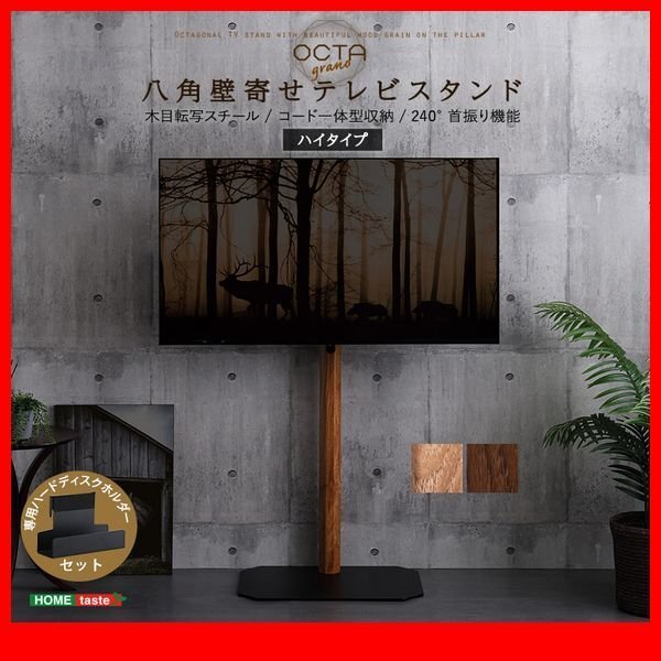 | ヴィンテージカラー(ウォールナット、シャビーオーク)をスチール支柱に 木目を転写したスタイリッシュなデザインの八角テレビスタンド ハイタイプハードディスクホルダーセットです。 ブラック×木目のオールスチール素材はインパクトがあり、お部屋の雰囲気がガラッと変わります。 ハイタイプなので、会議の打ち合わせやイベントでも大活躍すること間違いなしです。 支柱内部にコードを通す穴が空いているので、スッキリ見せれます。 240度のスイングタイプで32?65インチのテレビを取付できます。 高さは3段階調整可能でお好みの高さに設定できます。 |