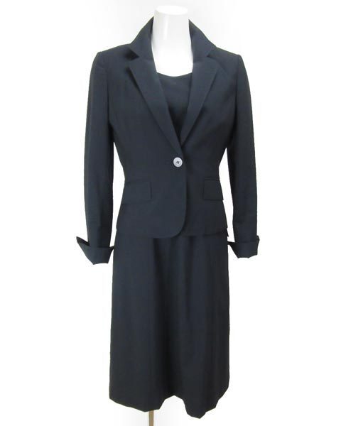 | コメント | 上品できちんと感のある紺のセットアップ。 ビジネスシーンやお子様のお受験や学校行事など 1枚は欲しいアイテムです。 上品なステッチが入っていて、シンプルながらも オシャレなディテール。 ジャケットのボタンにはロゴが入っていてブランドアピールがあります。ジャケットのお袖口にスリットが入っていますので、折り返して着て頂くこともできます。 |