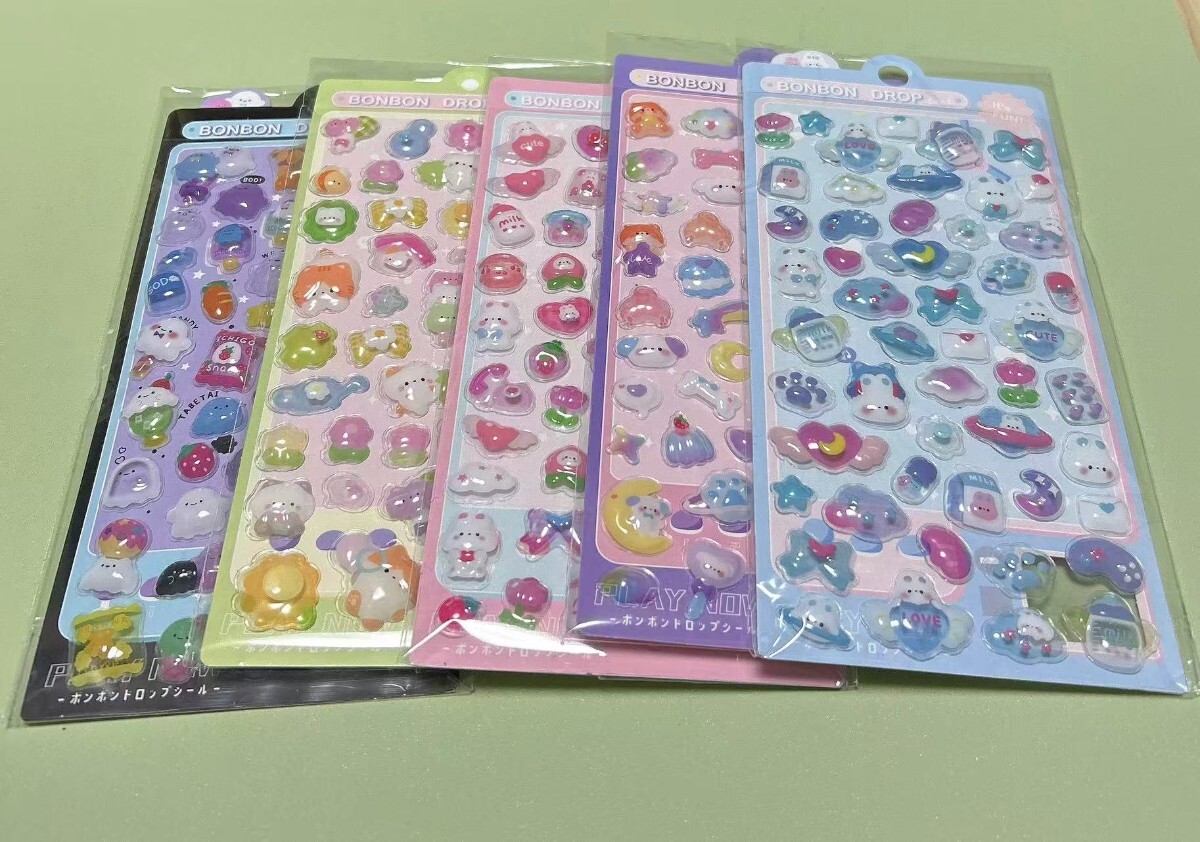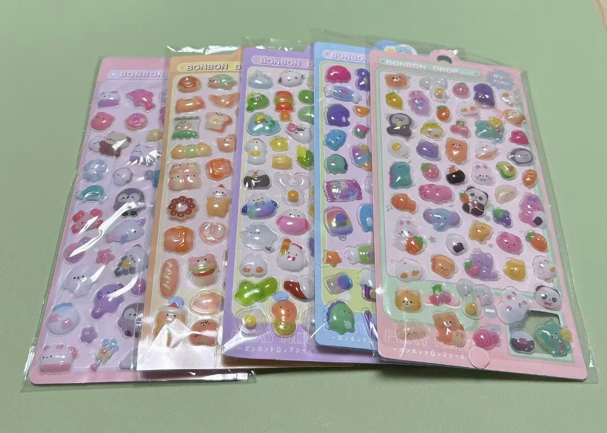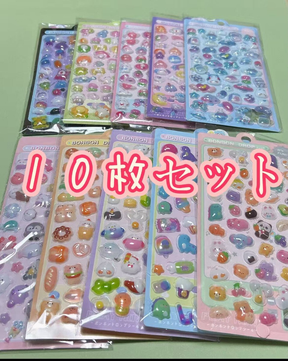 10枚まとめ売り カラフルの透明シール 立体シール ぷくぷくシール ボンボンドロップシールたっぷり