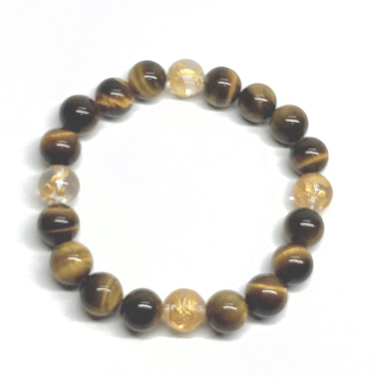 こちらは、四神獣金彫水晶とタイガーアイを組み合わせたパワーストーンブレスレットです。四神獣は、中国の伝説で4つの方向(東西南北)を守護する神聖な神。四神獣、厄災から身を守り、多くの運気を呼び込むと言われております。石大きさは程よくインパクトのある10mm玉で内周 約17cmです。 数に限りがございますので気になる方はお早めにどうぞ。
