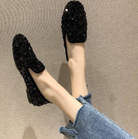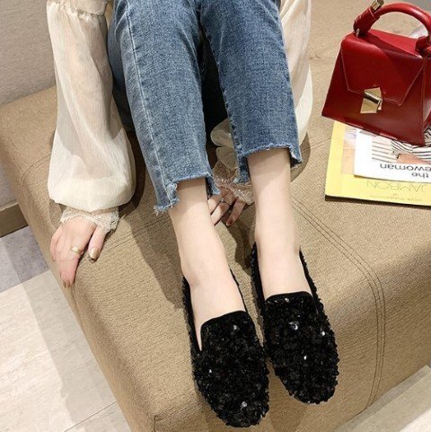 ・足元が華やかになるスパンコールシューズ。