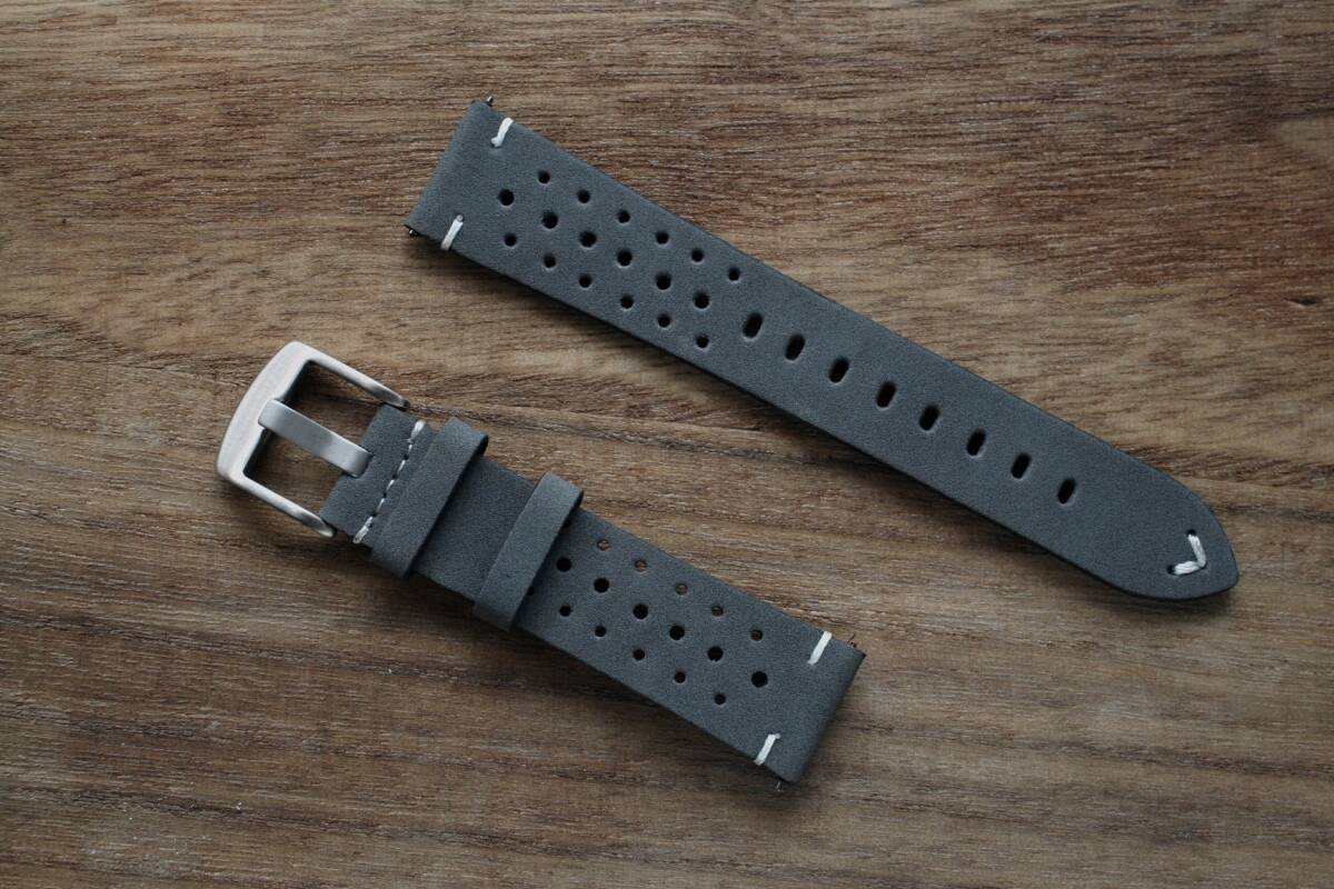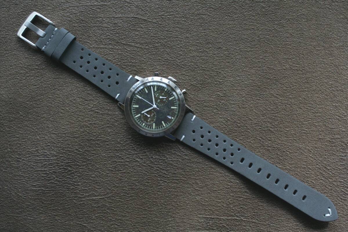 【20mm・22mm】 本革ベルト パンチング 灰 マットグレー ラリーstyle