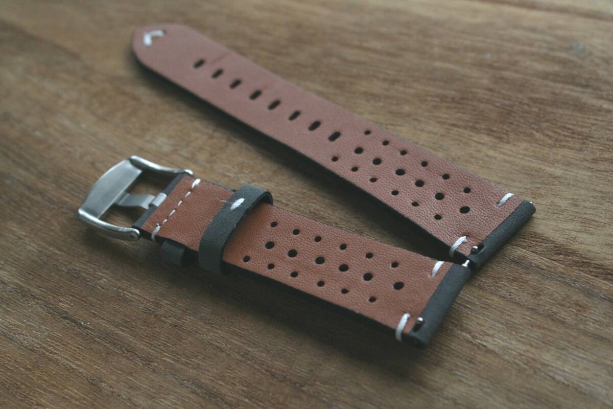 ■ 60年代のモータースポーツ、ホイヤーカレラに代表されるスポーツウオッチを彷彿とさせる、マットでビンテージ感のあるレザーベルトです。