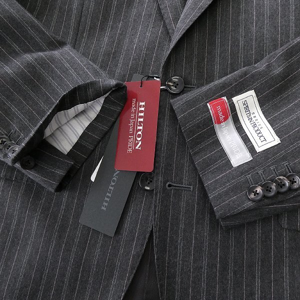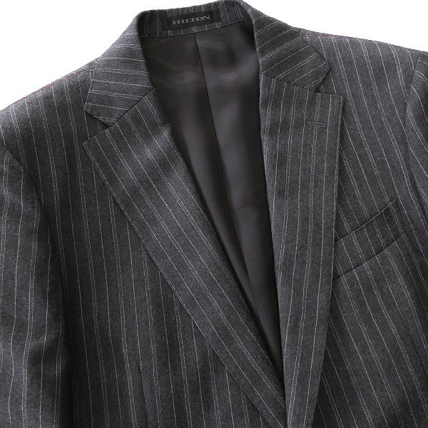 【HILTON】 1960年代にイタリアのベスティメンタ社によって手掛けられた歴史と伝統あるブランドで、ベスティメンタ社からトンボリー二社に事業を受け継ぎ今なお世界各国で愛されているブランドです。 【御幸毛織】 明治38年(1905年)、名古屋市で江利一郎氏が織物と染物の工場開設を持って創業した日本を代表する老舗服地ブランド。 創業以来、原料から服地まで自社完全一貫生産を守り続けており、 「糸一本まで他人に任せない」というポリシーは世界でも高い評価を得ています。 -------------------- 愛知県でヨーロピアン製織法を日本流にアレンジした方法で製織し、名水の産地である三重県四日市市で生地を洗い・仕上げを行い、縫製は国内有数の縫製工場である青森県弘前市『ワークス』による縫い。 服地の生産から縫製まで国内で一貫して行っています。 最高服地メーカー『御幸毛織』の伝統的な匠の技によって仕上げられる服地づくり。 最高級スーツの価値を裏打ちする縫製。細かいディテールの積み重ね、堆積していく哲学。 常に最高の着心地を追求するメイドインジャパンのスピリットが積み重なったプレミアムスタイリッシュスーツに仕上げました。 【ジャケット】 ・フロントは2つボタン ・総裏地 ・サイドベンツ ・袖先は4つボタン(本切羽) 【スラックス】 ・テーパードシルエット ・ジッパーフライ ・ノータック ・ウエストアジャスター付き |