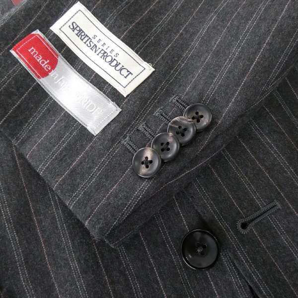 A6サイズ(標準体型のLサイズ相当) 胸囲94 胴囲82 身長175 ※写真は別サイズを使用している場合がございます※ ※商品に記載されたサイズ・寸法です※ 【ジャケット】 肩幅44cm 身幅51.5cm 袖丈61.5cm 着丈72cm 【スラックス】 ウエスト78~88cm(内回り1周) 股上25cm 股下93cm 裾幅19.5cm 腿幅30.5cm(股下10cm部分) 表地:毛100% 裏地 胴裏:キュプラ100% 袖裏:キュプラ100% 下衣:ポリエステル100% グレー×レッド×ホワイト |