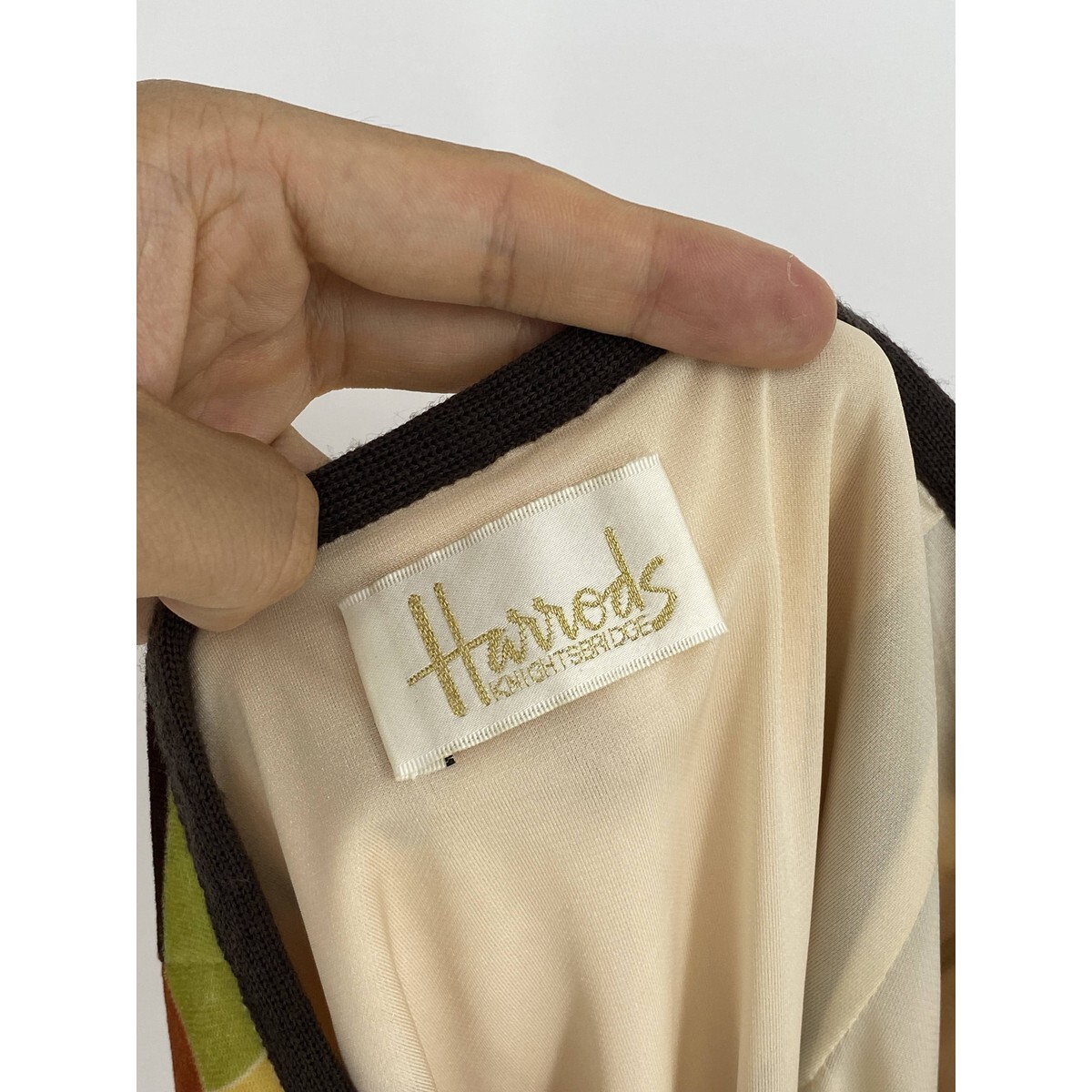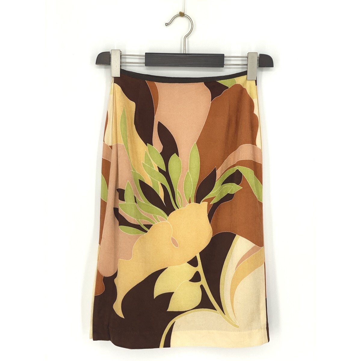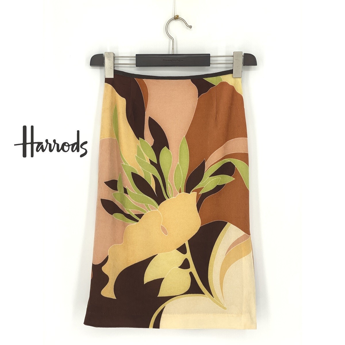 B0716/極美品 Harrods ハロッズ トリアセテート ベロア ベルベット 光沢 総柄 タイト ミモレ丈 膝丈 スカート S程 マルチカラー レディース