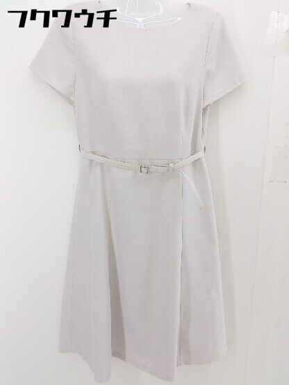 ◇ ◎ NATURAL BEAUTY BASIC ベルト付 半袖 膝丈 ワンピース サイズL ライトベージュ レディース