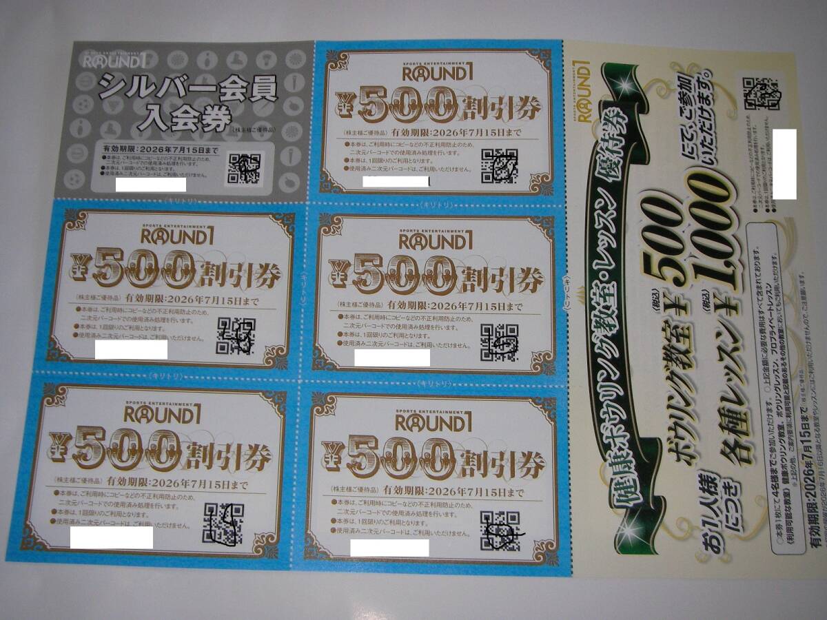 ★ラウンドワン 株主優待券2,500円分 クラブ会員入会券1枚 ボウリング教室 レッスン優待券1枚 有効期限:2026年7月15日★