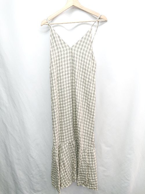 ◇ ⊂ UNITED ARROWS ユナイテッドアローズ チェック柄 キャミソール ロング ワンピース サイズM カーキ系 レディース E