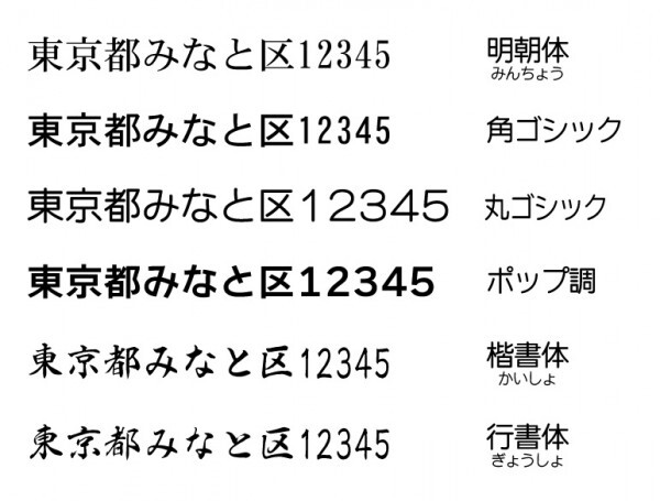 ③ご希望の書体【必須】:明朝体/角ゴシック体/丸ゴシック体/ポップ体/楷書体(かいしょたい)/行書体(ぎょうしょたい)