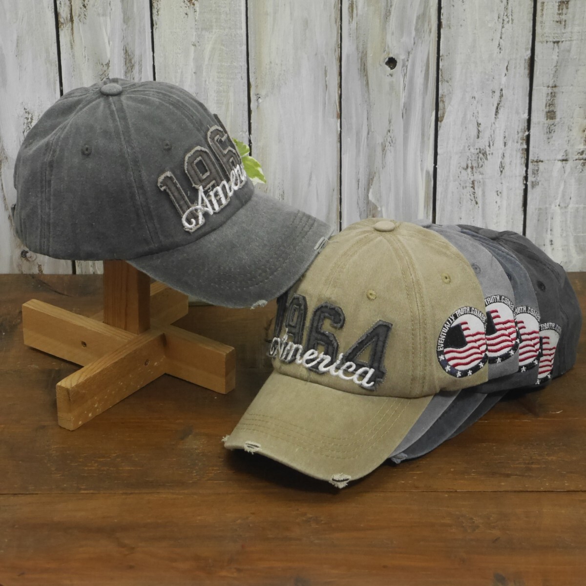 送料\450 1964 America ビンテージ ダメージ 色あせ キャップ ブラック サイズ調整可能 男女OK メンズ レディース