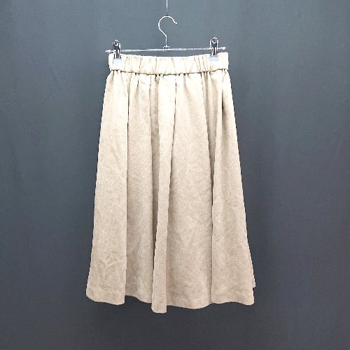 ◇ IENA SLOBE ウエストゴム スウェード風 オフィスカジュアル ひざ丈 フレア スカート サイズ36 ベージュ レディース E