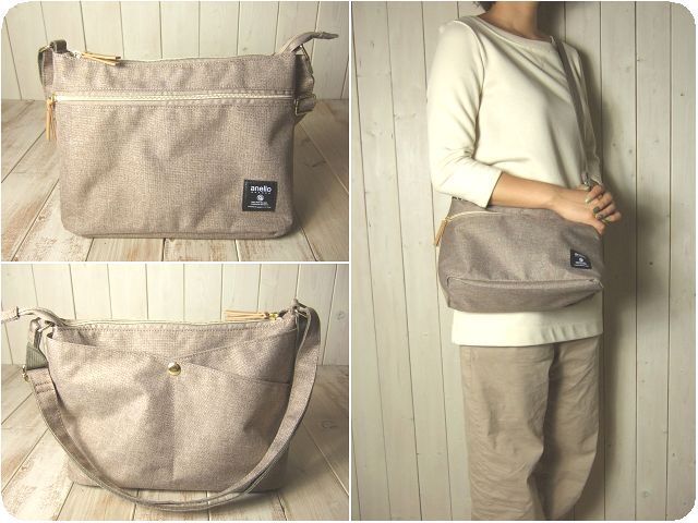 アネロ anello クラシック杢調ポリエステルのミニショルダーバッグ BE