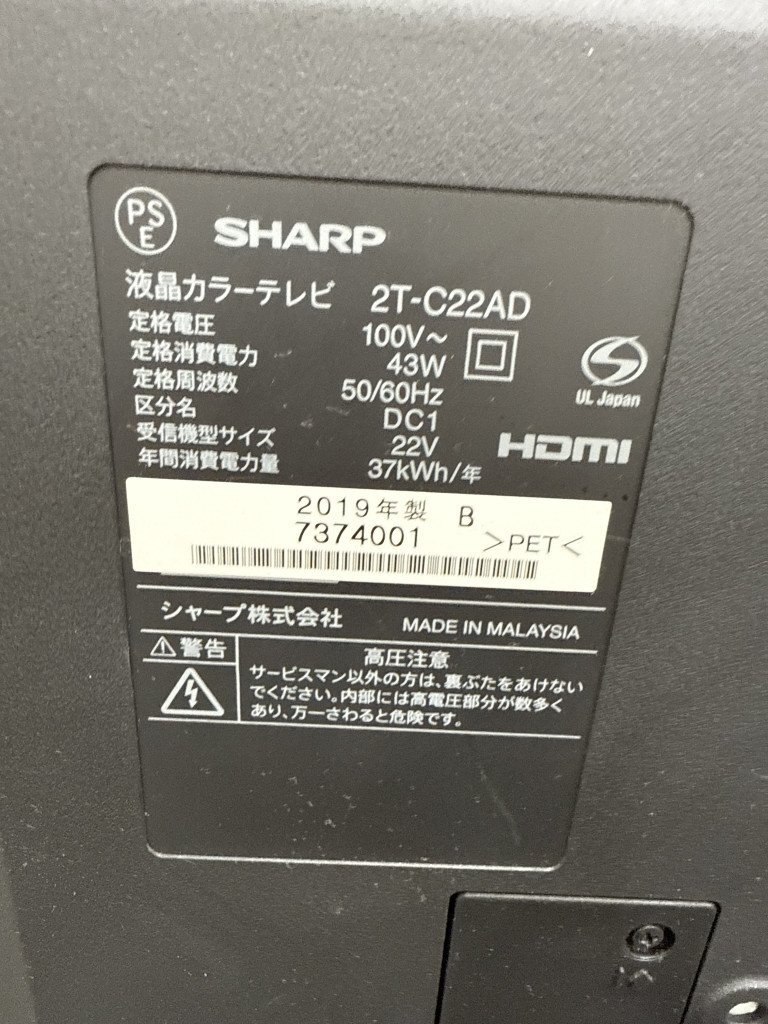 ▽ SHARP AQUOS シャープ アクオス 液晶テレビ 2T-C22AD 22型 2019年製 KB215079