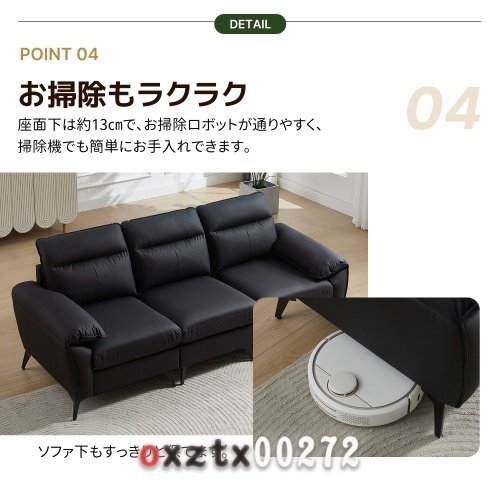 • ◎5【お掃除もラクラク】座面下は約13cmで、お掃除ロボットが通りやすく、掃除機でも簡単にお手入れできます。ソファ下もすっきりと保てます。