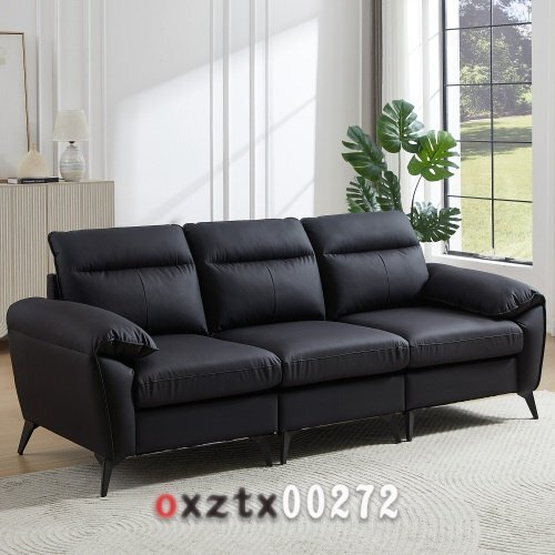 ソファ 3人掛け 幅205cm ソフトレザーソファ 3人掛け モダンスタイル リビングソファ ソファセット 高背もたれ【ブラック】