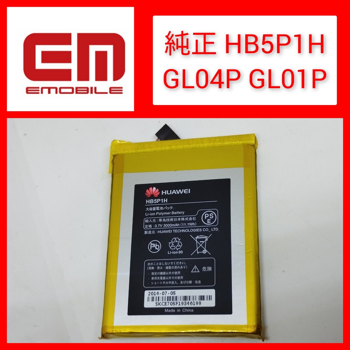 Huawei純正 HB5P1H 交換用バッテリー 3000mAh GL04P GL01P HWD14 E5776 モバイルルーター Li-ion 内蔵式