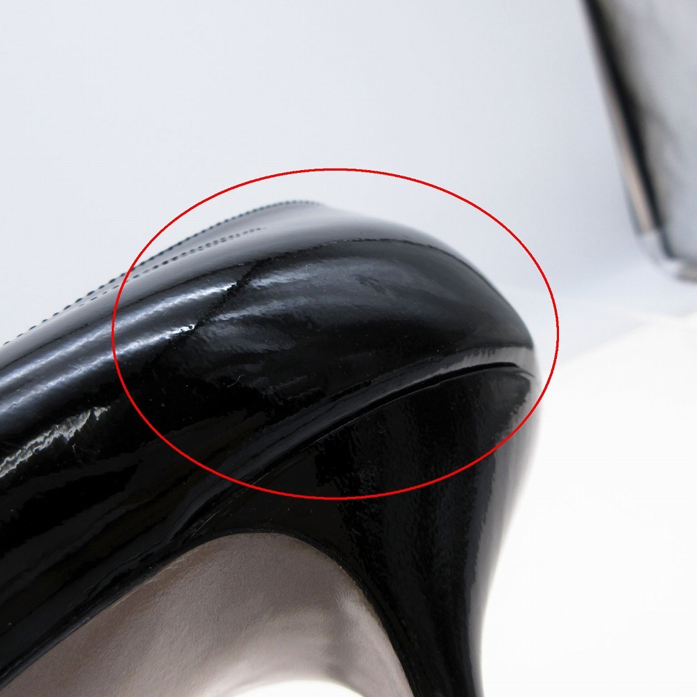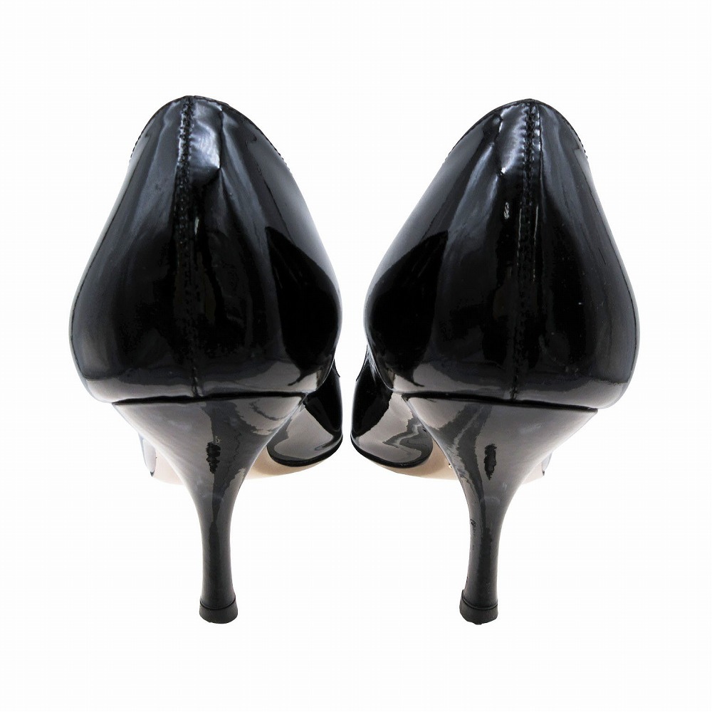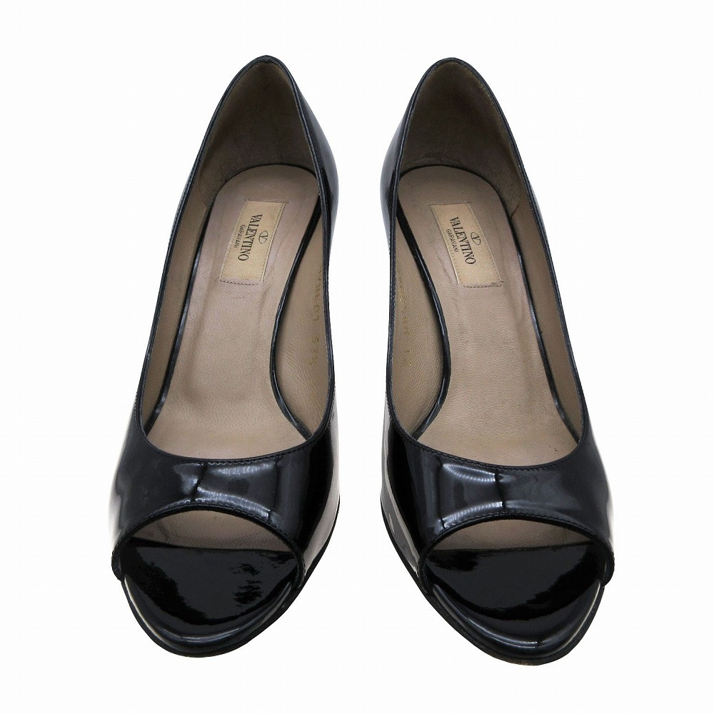 | 【VALENTINO GARAVANI ヴァレンティノ ガラヴァーニ パンプス オープントゥ エナメル パテントレザー 37.5 24cm 黒 レディース】 | |