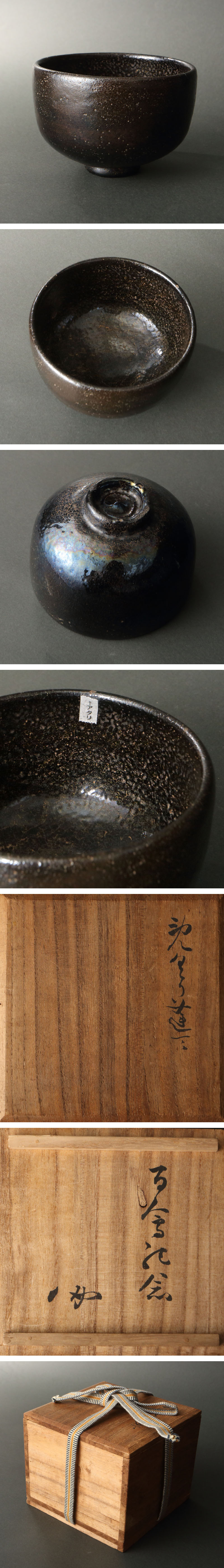 委託HK◇時代 黒茶碗 松浦心月庵書付(茶道具 陶磁器 陶芸 京焼 楽焼 黒茶碗 黒楽茶碗 抹茶碗 茶事 茶席 石州流 鎮信派)