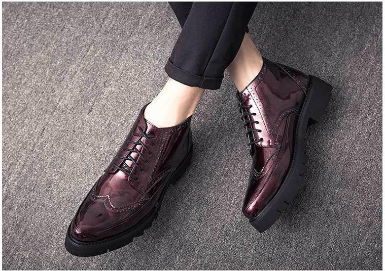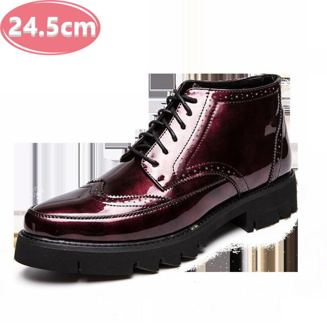 メンズ ビジネス レザー シューズ レッド 24.5㎝ 革靴 靴 カジュアル 屈曲性 通勤 軽量 インポート品【n137】